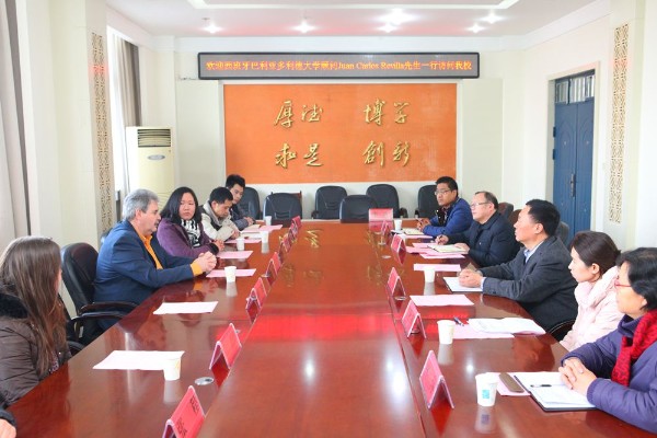 1月6日下午,西班牙帕伦西亚省教育体育与旅游基金会会长兼西班牙巴利亚多利德大学顾问Juan Carlos Revilla先生、西班牙巴利亚多利德大学校长助理王晨女士、河南省教育国际交流协会常务副秘书长孙玮女士等一行10人来访我校。副院长杜伟会见了来访客人,国际交流处、122cc太阳成集团等部门负责同志参加了会见。