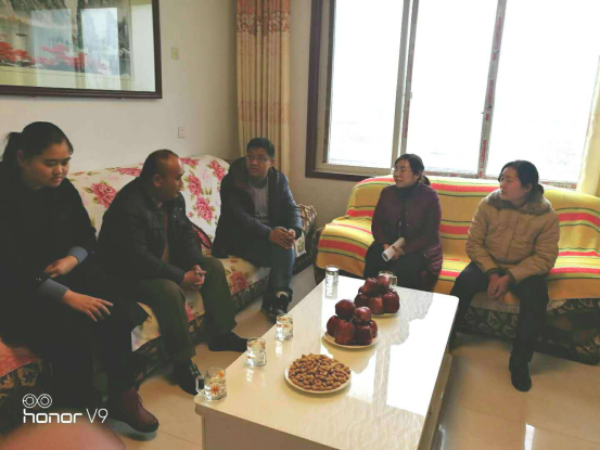 2018年2月24日下午,在122cc太阳成集团党总支副书记田占范带领下、团学办主任薛天桥老师的陪同下,2016级辅导员李柯老师不顾路途跋涉,怀着身孕坚持来到禹州市西关街王爽爽家里。该生为我院西班牙语翻译专业学生,各方面表现优异,但由于家庭经济困难使其考研的意向不够坚定。通过与其家长交流,减轻了家长的思想负担,今后将更加支持爽爽实现自己的考研梦。