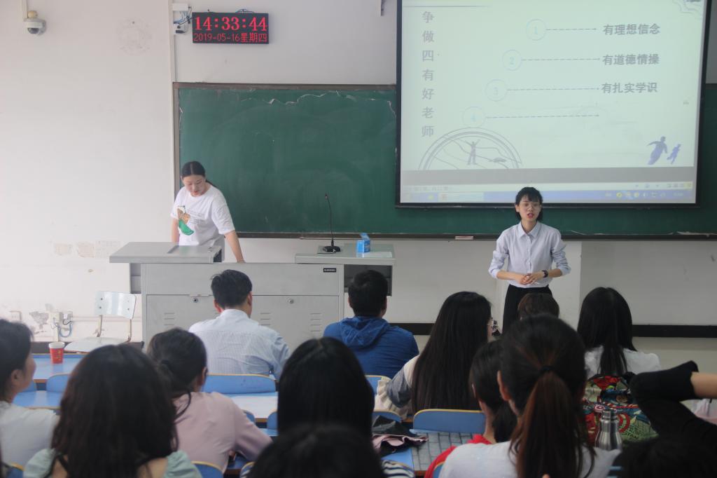 下午,李波到图书馆L615教室参加了2016级英语专业2班召开的以“争做四有好老师,做新时代合格接班人”为主题的班会。主题班会结合该专业学生未来的职业定位,根据习近平总书记在第三十个教师节前夕与北京师范大学师生代表座谈时提出的做好老师的“四有”标准的要求,进行了热烈的讨论。同学们纷纷表示要按照习总书记的要求,在未来从事教师职业时一定要做有理想信念、有道德情操、有扎实学识、有仁爱之心的好老师,成为符合党和人民要求、学生喜欢和敬佩的好老师。班会上还通过观看2018年“感动中原”年度教育人物视频材料,使同学们对“四有”好老师有了更直观更深入地了解。最后,李波对同学们的班会进行了点评,赞扬了同学们的理想追求,并结合自己大学期间求学的经历和工作后对教师这一职业的体会谈了自己的感想,勉励同学们争做“四有”好老师,做新时代合格接班人,为教育事业贡献自己的青春,实现自己的理想和追求。