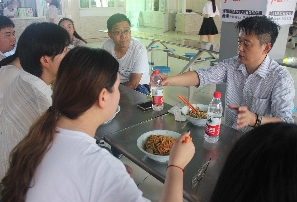李波首先来到15号学生公寓,与学生亲切交谈,了解学生的日常生活情况并听取学生对宿舍管理和服务的意见。之后到学生餐厅与学生共进午餐,并了解学生对食堂卫生条件、饭菜质量和价格等方面的意见和建议。通过对学生日常生活的了解,李波嘱托同学们要注意饮食安全,勉励大家要勤俭节约,珍惜来之不易的美好生活。