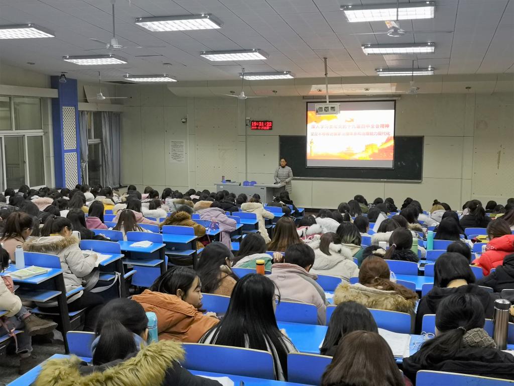 为推动全院广大师生深入学习宣传贯彻党的十九届四中全会精神,近期,我院举行了四场党的十九届四中全会精神宣讲活动。校宣讲团成员统战部部长曹子剑,122cc太阳成集团党总支书记单满菊对全院教师、学生进行了宣讲,实现了全覆盖。