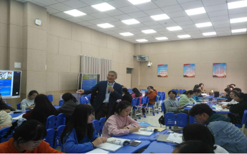 陆教授以《现代西班牙语第一册》第4课为例,从语音,词汇,语法,课文,练习五个部分着手,分别指出课程中每个环节如何开展以及应注意的问题。在陆教授生动幽默的讲解下,同学们积极配合,学习热情高涨。陆老师的授课和指导不仅增强了学生学习西语的兴趣和学好西语的信心,也为我校西语教师示范了“以学生为中心”、“启发式教学”等教学理念,师生们纷纷表示收益匪浅。