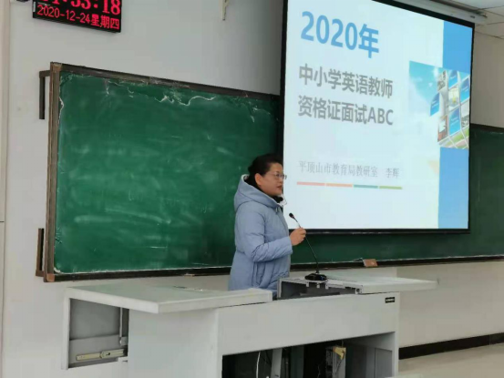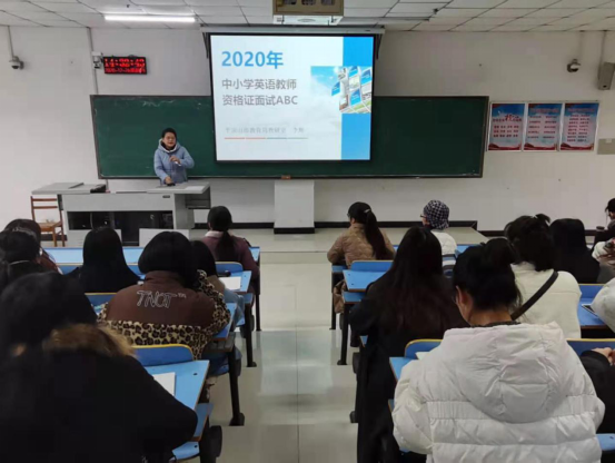 12月24日下午,122cc太阳成集团英语专业教研室邀请了平顶山市教育局调研室、教师资格证面试评委李辉老师在图书馆L716进行了中小学教师资格证面试专题讲座,122cc太阳成集团一百多名教师资格证考生参加了此次讲座。