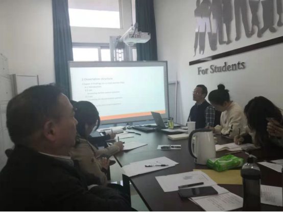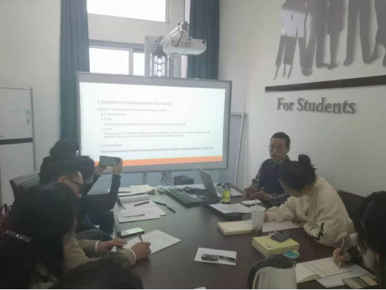 刘君栓教授针对学位论文写作思路和策略展开报告。首先介绍了学位论文的基本结构、各章节内容要素、国际常用文献引用体例,并结合一些实证研究论文讲述论文的写作策略,特别指出我校英语专业学士学位论文在选题、研究设计、文献引用格式方面所存在的欠缺。史龙博士针对论文写作中的文献查找的平台、文献阅读的方法与技巧展开报告。报告结合文学类型论文与教学方法论文的异同详细讲述了文献的搜索、阅读、分析等方法与技巧和注意事项。