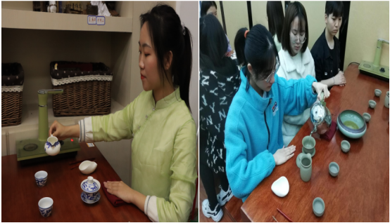 同学们交流着茶艺之道,品着自己的茶艺成果,在一片欢声笑语中度过了快乐而短暂的时光。大家认真的态度获得老师的称赞与好评。最后,崔老师和同学们一起对在场的助教和茶致谢,感谢人与大自然的和谐相融。同时,也期待商务英语专业学生结合自身专业优势,弘扬宣传中国传统文化,为中国文化走出去做出贡献。
