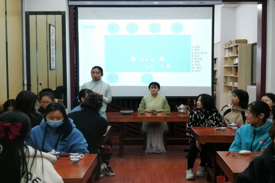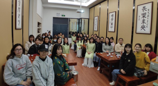 为进一步丰富商务英语专业教师与学生第二课堂活动形式,弘扬和传承中国传统文化,提升商务英语专业学生商务礼仪知识与文化内涵,122cc太阳成集团商务英语教研室于4月1日下午,在艺术楼茶艺实训室开展了中国茶艺文化学习活动。本次活动由旅游与规划学院旅游管理专业崔霄老师主讲,旅游管理专业学生助教协助,18级商务英语专业全体学生及专业老师共同参加。