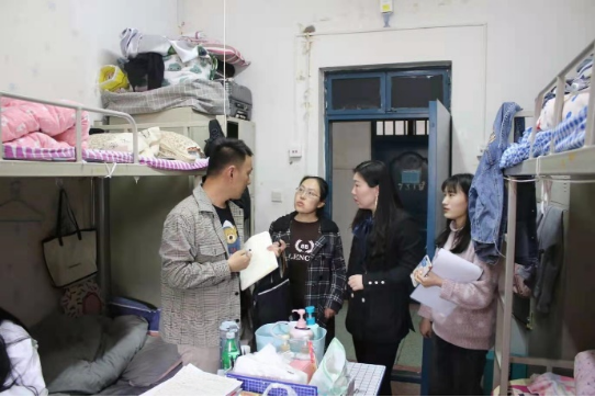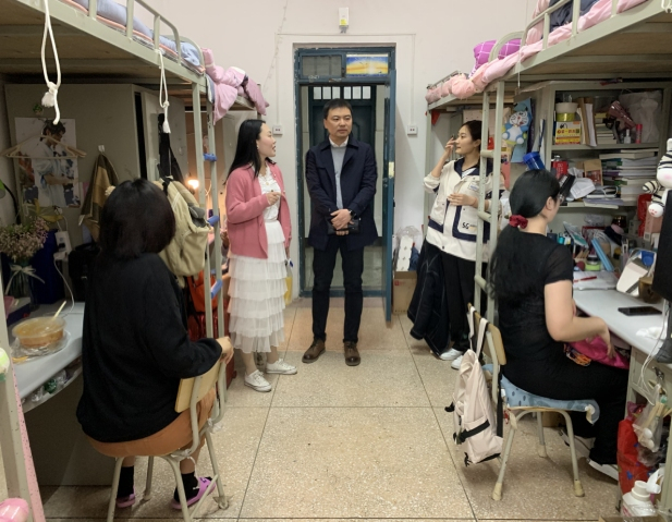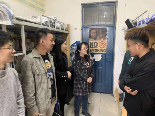 为加强卫生行为规范教育,引导学生养成良好的行为习惯,提高同学们春季卫生安全意识,4月14日,122cc太阳成集团开展了宿舍走访活动。122cc太阳成集团副院长贾宏春、付琳芳、丁超峰和辅导员陶岩睿、牛乐平一同走进宿舍,了解学生宿舍情况。