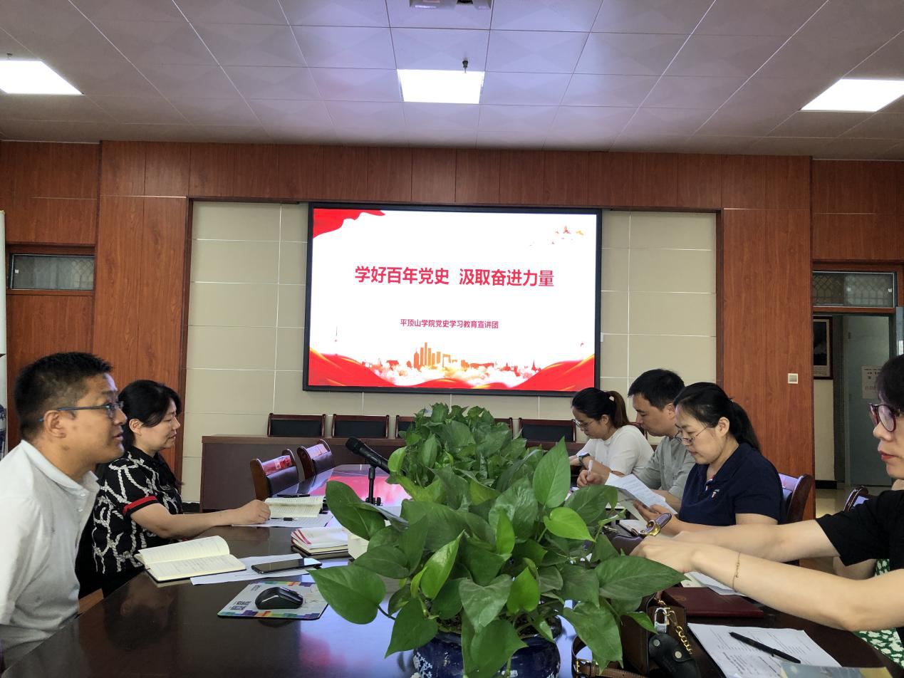 之后,与会人员一一向大家汇报了党史学习教育开展以来自己的学习情况、心得体会和下一步学习计划,党委副书记田占范对我院下一步党史学习教育进行了安排部署。最后,院长蒋领敏强调把开展党史学习教育作为师生思想教育的重要内容贯彻到日常的教育教学工作中,通过学习党史使全院师生做到了知史、爱党,通过学习党史砥砺初心,坚定使命,不断增强创业干事的本领,汲取奋进的力量,并将其转化为推动实际工作的强大正能量。