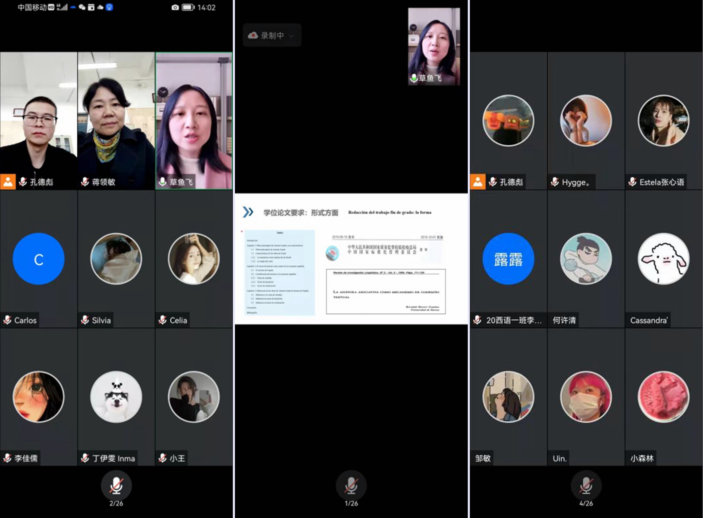 11月25日,上海外国语大学西方语系西班牙语博士生导师曹羽菲博士应邀作了题为《西班牙语专业学位论文写作》的学术报告,122cc太阳成集团相关负责人、西班牙语专业师生100余人参加了报告。本次报告采用腾讯会议的形式进行,由122cc太阳成集团院长蒋领敏教授主持。
