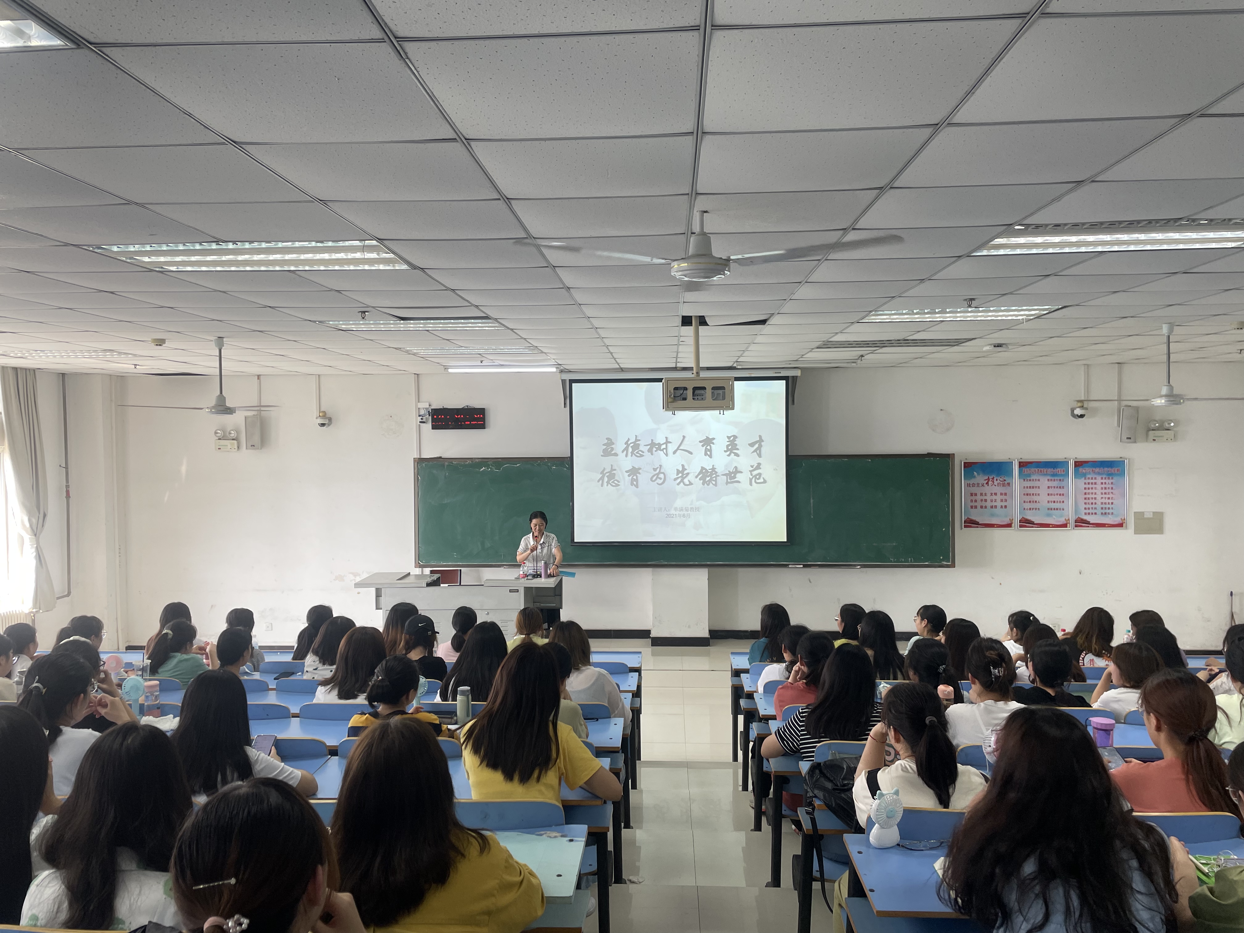 为进一步加强我院师范专业学生职业道德教育,提高师范生思想道德修养,强化师范生教育教学技能,6月10日下午,122cc太阳成集团于图书馆716开展了以“立德树人育英才,德育为先铸世范”为主题的思想教育讲座。本次讲座由122cc太阳成集团单满菊教授主讲,我院英语专业非毕业生全体同学参加了此次讲座。