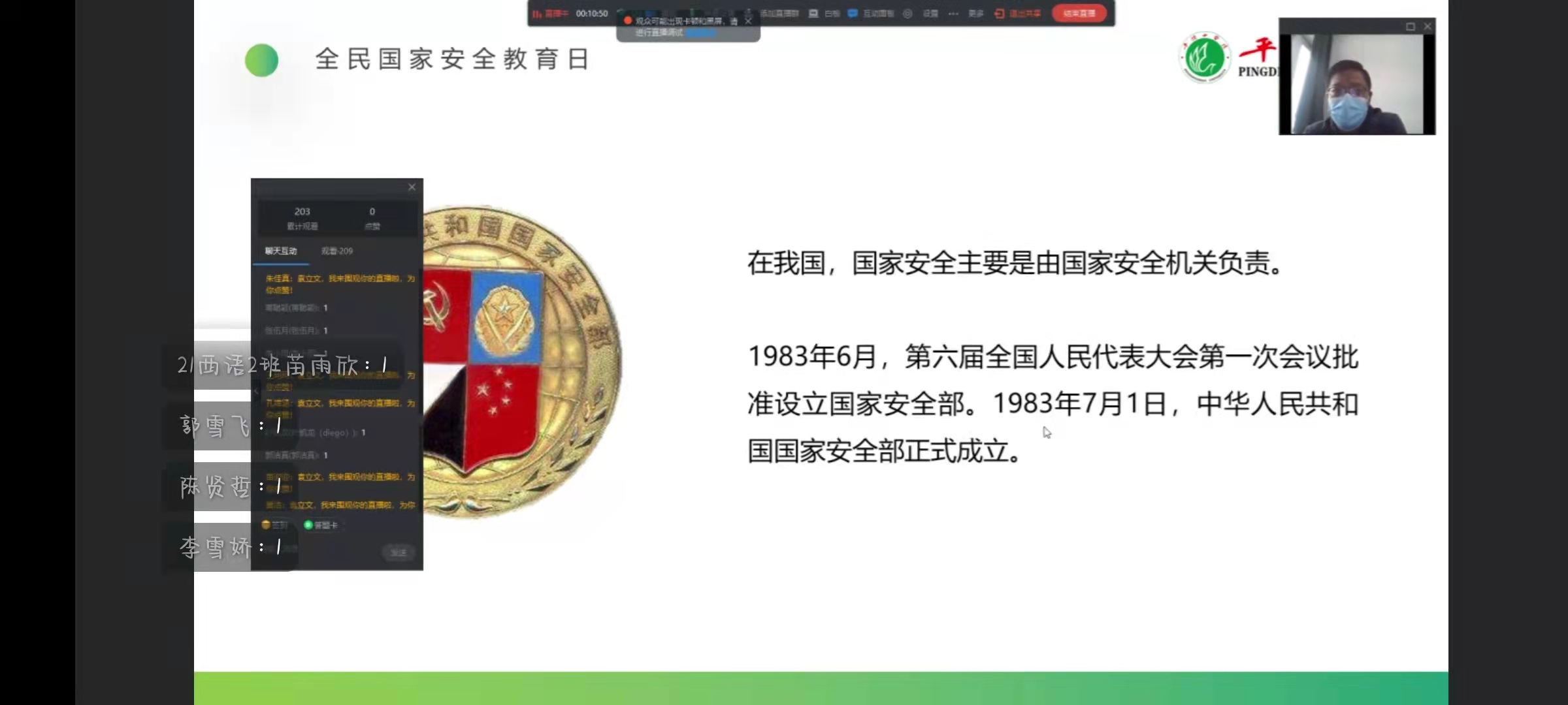 为贯彻习近平总书记关于总体国家安全观重要讲话指示精神,进一步增强全体师生自觉维护国家安全的意识,4月14日,122cc太阳成集团开展了国家安全教育讲座,本次讲座由122cc太阳成集团党委副书记田占范主讲,122cc太阳成集团全体师生参加了本次讲座,讲座采取线上与线下相结合的形式进行。