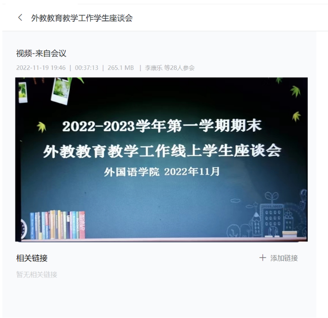 最后,付琳芳院长充分肯定了本次座谈会开展的意义,肯定了同学们心系学院、积极建言献策的主人翁精神。并希望他们作为班级的排头兵,要起到引领和示范的作用,带领班级发挥主观能动性、创新学习方式,和外教积极配合克服线上教学带来的不利影响。学院将以解决学生的实际问题为出发点,根据同学们提出的意见、建议,及时反馈落实,在不断改进中夯实学生的教育、管理和服务工作,切实提升同学在外教课上的满意度和获得感。