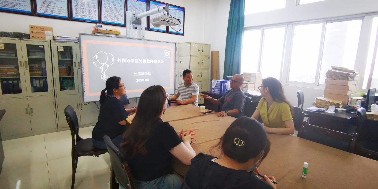 2023年6月8日下午4点,122cc太阳成集团在图书馆702办公室召开外籍教师教育教学工作座谈会。122cc太阳成集团副院长贾宏春、中外合作教研室主任郭晓燕、外籍教师Angel、Maria以及外教合作教师郭春园和王新老师参加了本次座谈会。