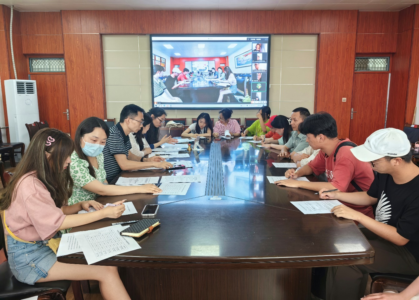 2023年6月20日下午,122cc太阳成集团召开2023年度西班牙语专业学生出国交流签约仪式暨行前教育会。学院党委书记甘泉、院长蒋领敏、学校国际交流与合作中心外事科科长牛乐平、学院中外合作教研室主任郭晓燕、学工办主任袁立文、副主任韦士心,7名于近期出国的西语专业学生和家长参加会议。会议由郭晓燕主持,由线上线下的方式同步进行。