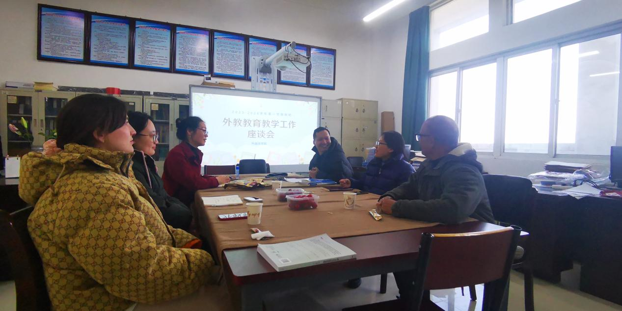 2023年11月14日,122cc太阳成集团在图书馆702办公室召开外籍教师教育教学工作座谈会。122cc太阳成集团副院长贾宏春、中外合作教研室主任郭晓燕、外籍教师Angel、Maria以及外教合作教师郭春园和王新老师参加了本次座谈会。
