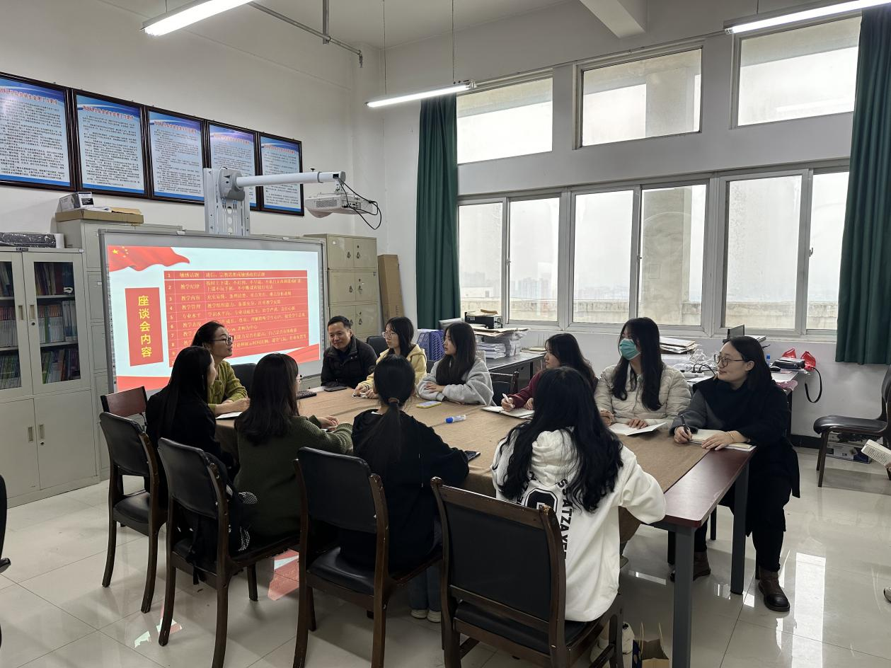 座谈会上,13名学生代表踊跃发言,对于两位外教的教育教学工作给予了充分的肯定,同时也结合各自专业、年级和学科特点提出了提出相应的意见和合理化建议,希望从课堂教学和第二课堂活动中更多感受中西文化差异,提升跨文化交际能力。两位合作教师认真倾听、详细记录学生发言,并结合外教情况对学生的意见和建议就相关问题进行了及时回应与互动交流。在认真聆听学生代表逐一发言后,中午合作教研室负责人郭晓燕老师表示,将根据同学们针对英语外教Angel和西语外教Maria在意识形态、课堂组织管理、课后辅导答疑等方面的具体意见和建议向外教及时反馈,并监督外教做出改进和完善。最后,郭老师在总结讲话中寄语全体学生代表要做好外教与班级的沟通桥梁,带领班级同学合理规划,做外语学习的有心人,希望同学们在未来的学习生活中,积极实践、主动作为为未来的人生发展奠定坚实的外语基础。