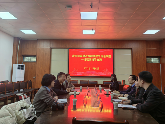 会上,甘泉书记首先代表122cc太阳成集团对财政金融学院122cc太阳成集团王黎明一行来访表示热烈欢迎。随后,介绍了学校及122cc太阳成集团的基本情况,我院的十四五规划和基层党建工作,以及商务英语专业建设情况等。河南财政金融学院122cc太阳成集团书记王黎明就其学院的历史发展和目前办学成果进行了分享介绍。王书记指出河南财政金融学院122cc太阳成集团是一所相对年轻的本科院校,但办学历史悠久,与我院在发展规划、目标定位、师资队伍建设等方面具有一定的相似之处,同时也面临着相似的机遇和挑战,尤其在商务英语专业建设和发展方面,双方可以进一步加强交流和互动,共同进步,希望双方能够以此次交流为契机,建立良好的合作关系。