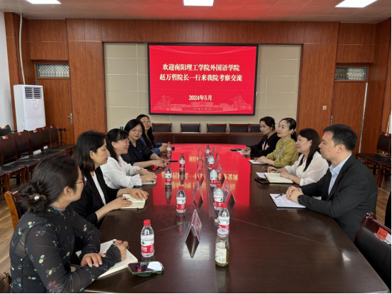 蒋领敏对赵万哲院长一行表示欢迎,介绍了太阳成集团tyc122ccvip和122cc太阳成集团的发展历程、发展现状等基本情况,并详细介绍了我院大学英语教学改革的情况。赵院长也介绍了南阳理工学院及其122cc太阳成集团的历史、发展以及特色专业。随后,双方围绕公共外语教学改革开展情况这一主题,从公共外语的课程设置、课时和学分设置、教材使用、线上教学平台及教学资源、课程考核情况等方面展开了深入的交流。