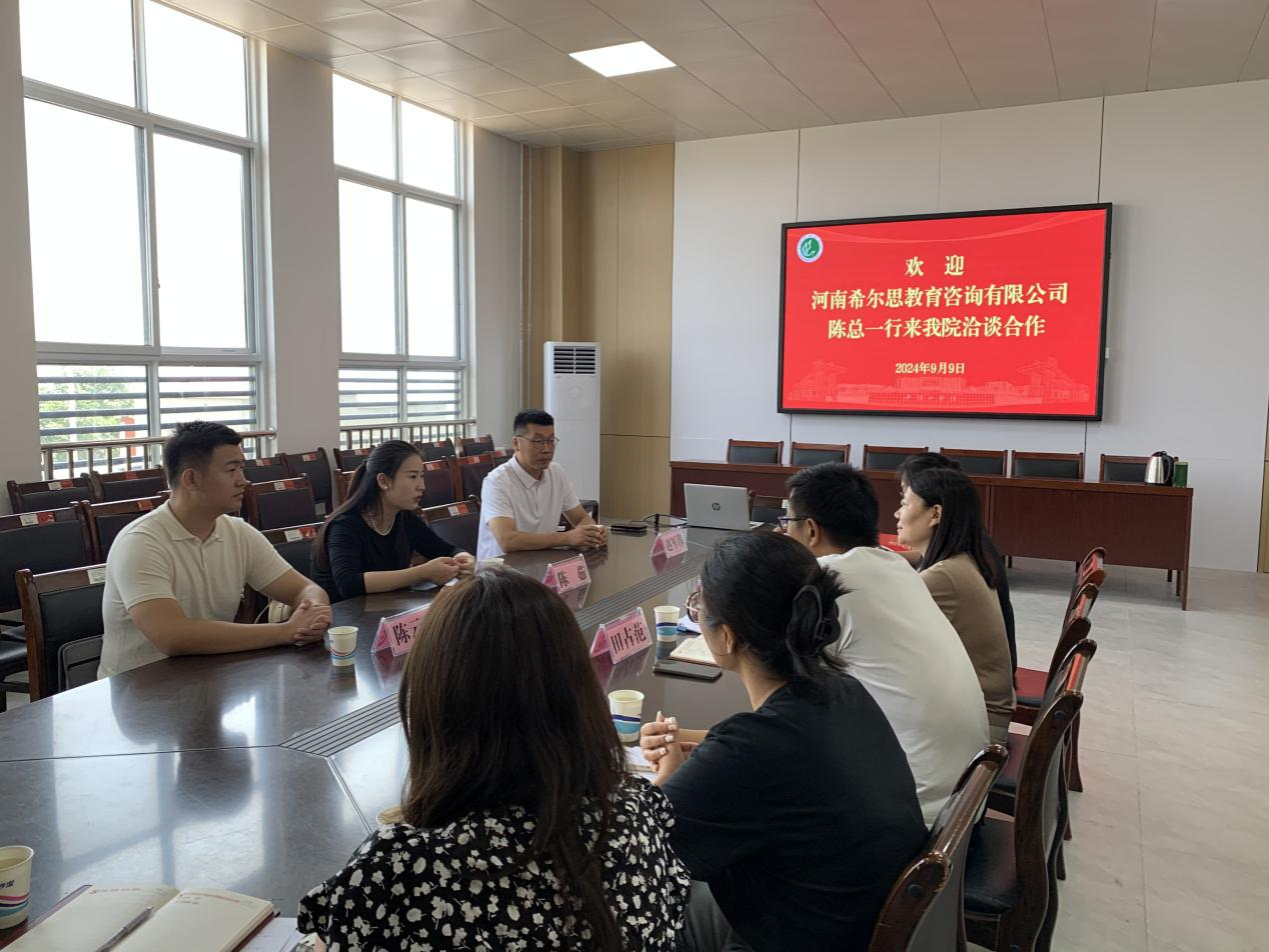 9月9日,河南希尔思教育咨询有限公司陈茹总经理一行人莅临我院开展校企合作活动,深入加强院企合作,实现资源共享和互利共赢,促进毕业生的充分就业和高质量就业。