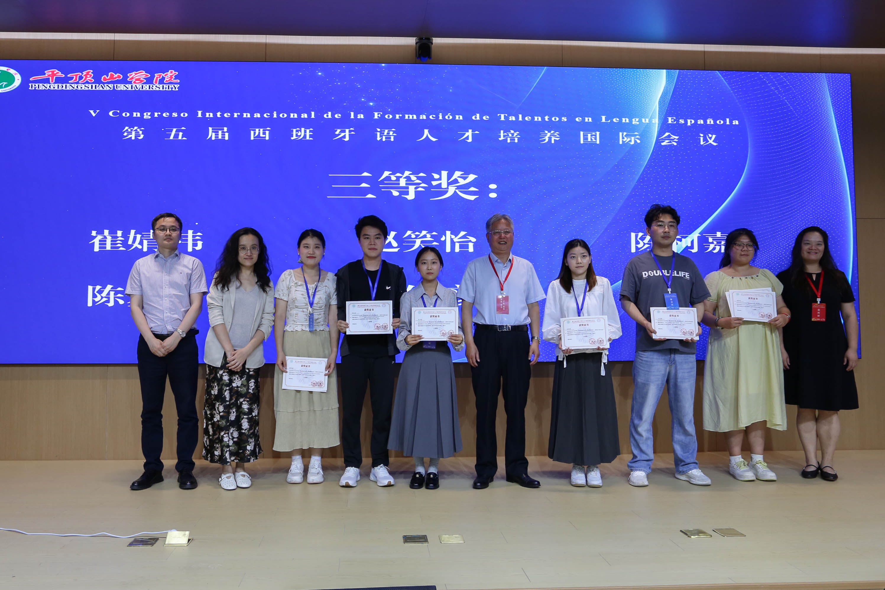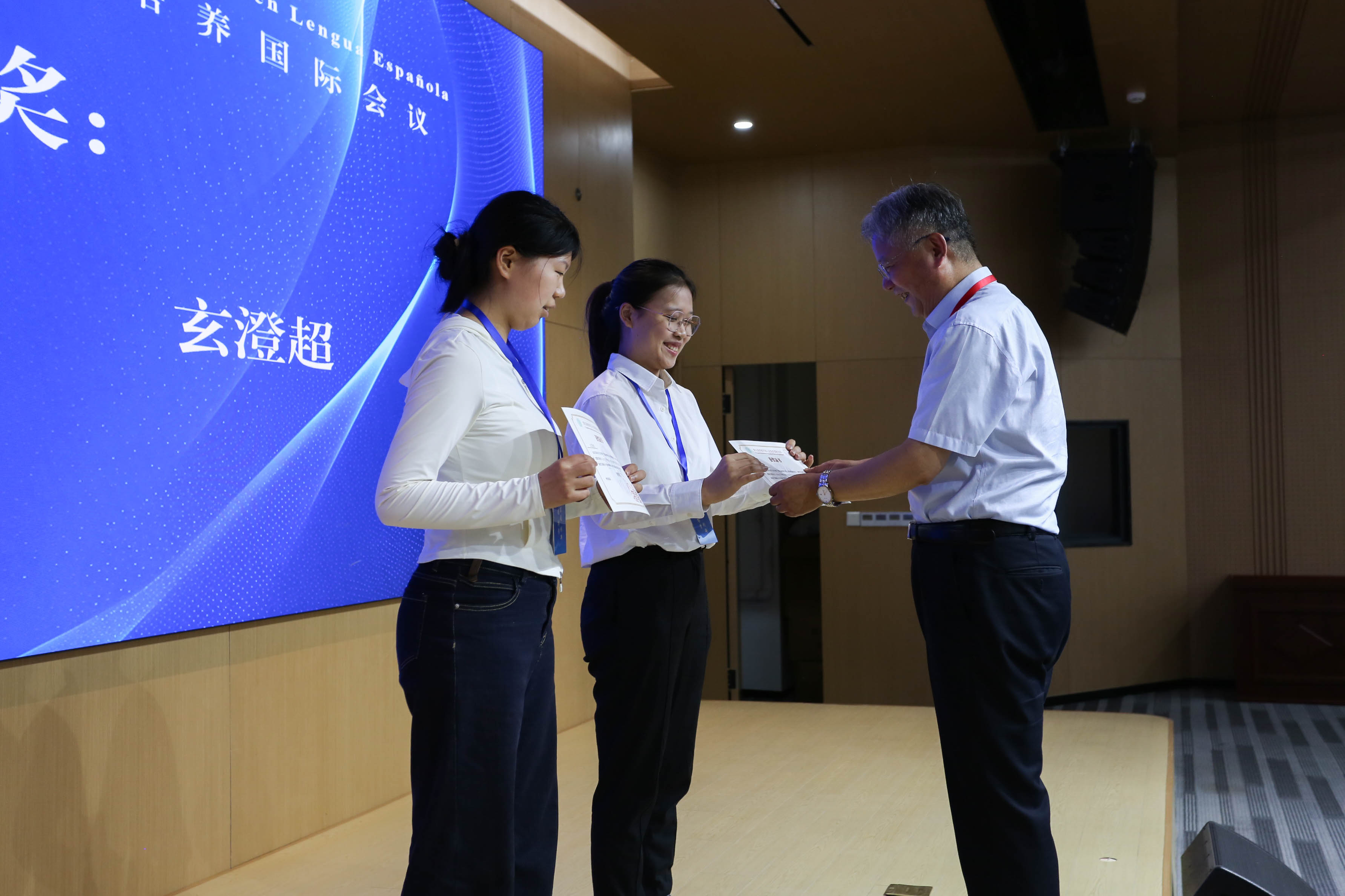 下午,大会进行研究生和本科生论坛。来自北京外国语大学、澳门科技大学等境内外高校十八名青年学者进行了分享,涵盖语言学、翻译学、西班牙语教育、比较文学、国际关系等多个研究领域,充分展现了青年学者在西班牙语研究方面的学术热情与创新思维。闭幕式上,现场嘉宾为获奖论文的学生颁发了证书。