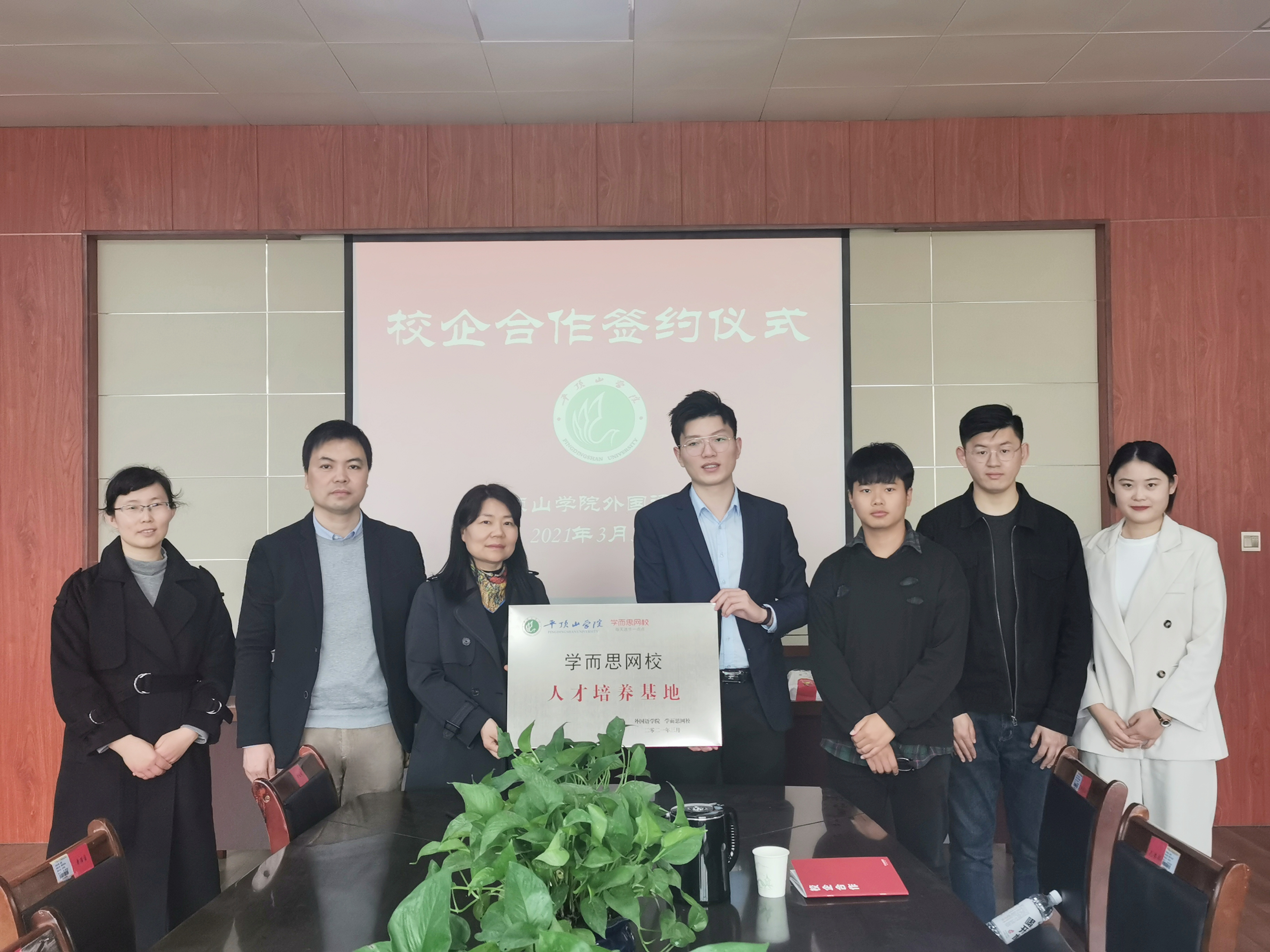 3月30日上午,我院与学而思网校在L708会议室举行了校企合作签约揭牌仪式。122cc太阳成集团院长蒋领敏、副院长丁超峰、英语专业教研室副主任都婧婧、辅导员韦士心,学而思网校校企负责人郝高齐、校企合作品牌官黄禹铭、滕馨、校企合作渠道负责人魏伟旗共同出席了此次签约仪式。