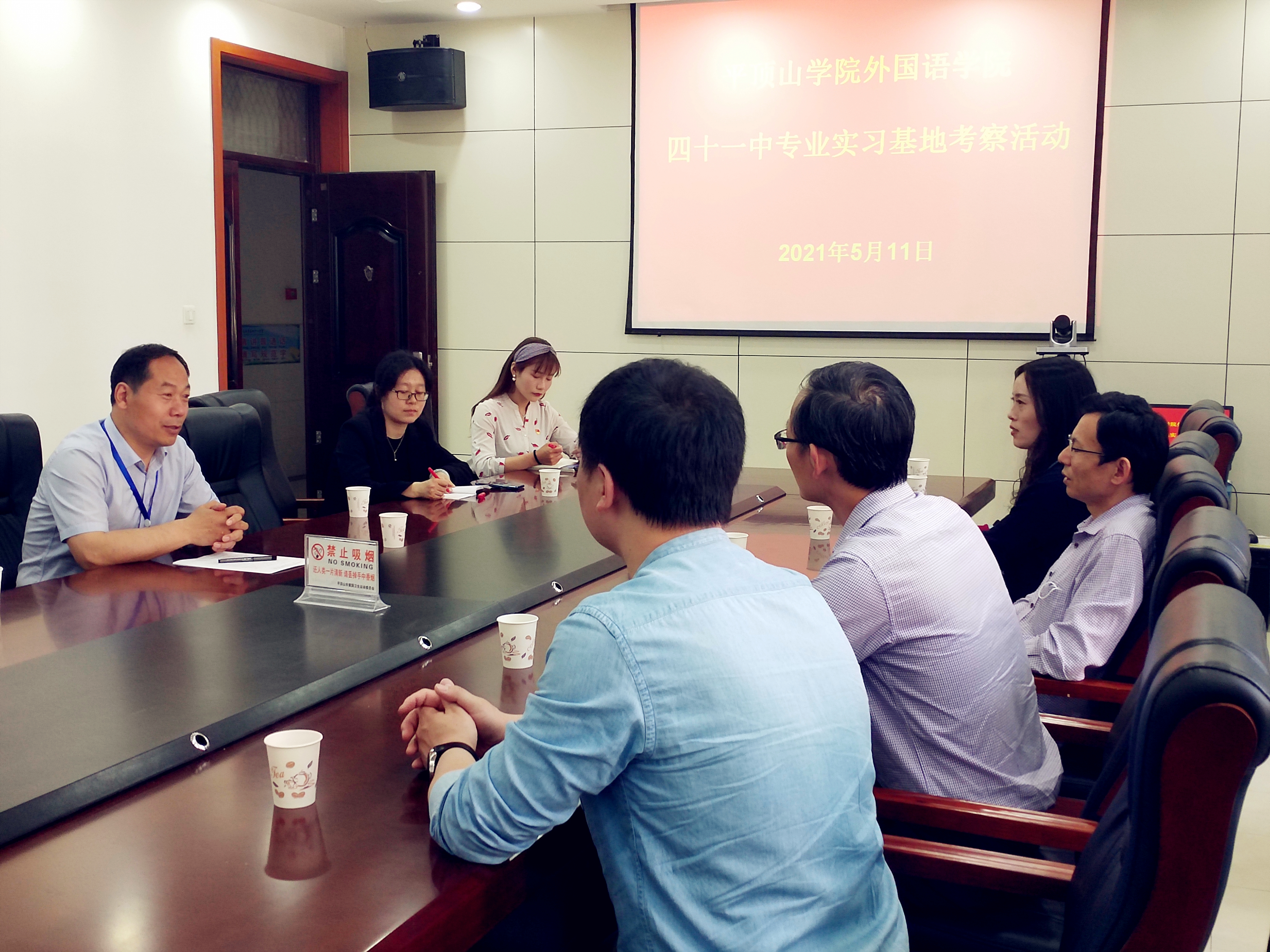 为深入推进产教融合、校校合作,切实提高我院英语专业应用型人才培养质量,加强校外实践教学管理,2021年5月11日,由教务处、122cc太阳成集团以及其他兄弟院系领导组成的调研团,到我院校外实践基地平顶山市第四十一中学进行走访调研。