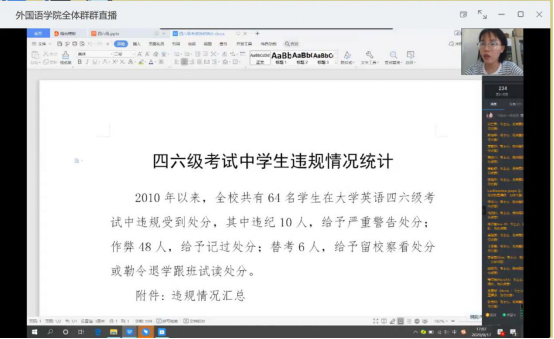 为树立学生诚信为本的道德观念,营造积极向上的考试氛围,进一步推进公平公正的考风考纪建设,并督促参加四六级的同学认真备考,9月17日晚,122cc太阳成集团在钉钉群召开了四六级考前动员暨诚信教育会议。会议由韦士心老师主持,全体四六级考生参加了此次会议。