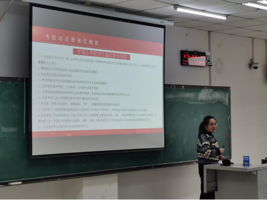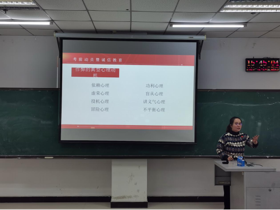 为树立学生诚信为本的道德观念,进一步推进公平公正的考风考纪建设,122cc太阳成集团于12月24日下午在图书馆L701举行了考前动员暨诚信教育会。此次动员会由袁立文老师主持,122cc太阳成集团全体学生参加了本次会议。
