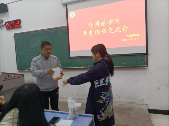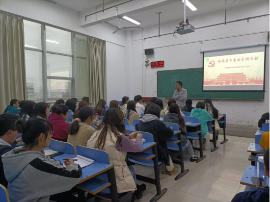 活动伊始,田书记为各支部分发了党史书籍,同学们认真研读,细细品味,仿若身临书中情境,亲睹那段历史。接着,田书记为同学们讲述了中国共产党的光辉历程。从1927年中国共产党成立到土地革命战争;从万里长征到西安事变;从新中国成立到如今的建党百年……在田书记的讲述中,同学们看到了中国共产党百年奋斗的画卷。百年艰苦卓绝,百年荣耀辉煌。交流会上,同学们积极发言,交流学习党史感悟,大家纷纷表示,将进一步学习好党史理论知识,用心传承红色基因,真正做到知党史、感党恩、跟党走。最后,田书记对本次活动进行了总结,他强调:一百年来,中国共产党团结带领全国各族人民战胜各种艰难险阻,谱写了中华民族自强不息、实现复兴的奋斗凯歌,作为新时代青年,我们要坚定跟党走中国特色社会主义道路的信念,积极学习,为祖国的社会主义现代化建设贡献自己的青春和热血。