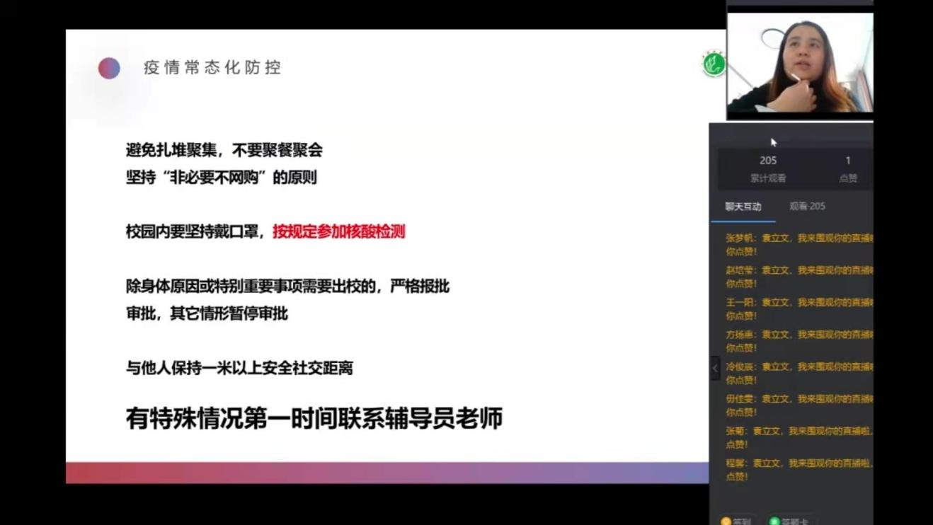 此次疫情防控主题班会增强了同学们的自我防护意识,有助于让学生了解疫情的严重性、防控的重要性,让学生理解学校对于学生的关心和爱护,坚定战胜疫情的信心。