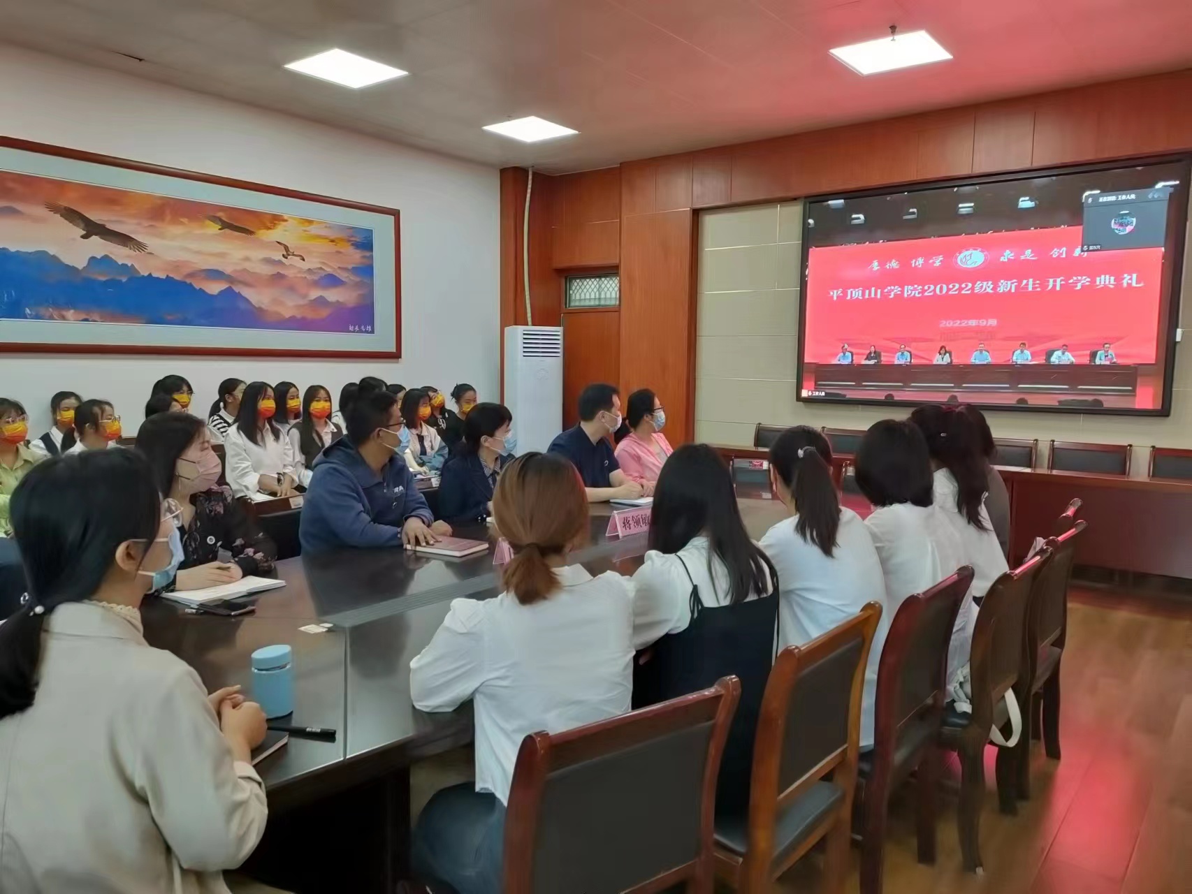 为迎接2022级新生入学, 强化新生价值引导,帮助其树立正确的世界观、人生观和价值观,并鼓励他们在新学期勇于拼搏、勤学善思、锐意进取,9月26日上午,太阳成集团tyc122ccvip2022级新生开学典礼顺利举行,此次开学典礼采取“主会场+分会场”、“线上+线下”的方式进行。122cc太阳成集团于图书馆708、715、4317设置分会场,组织各班在线收看开学典礼直播实况,122cc太阳成集团院长蒋领敏、党委副书记田占范、副院长贾宏春、丁超峰,全体辅导员及22级全体新生共同参与。