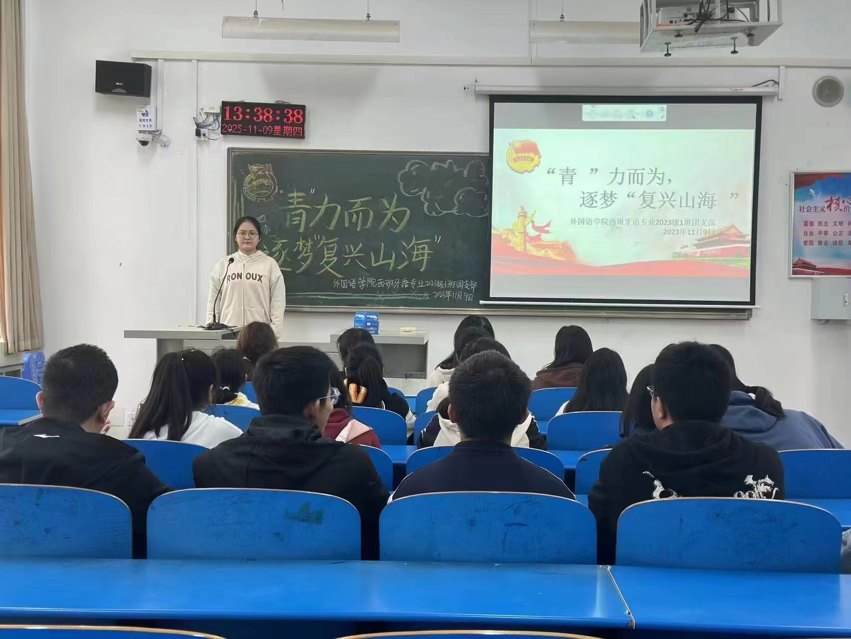 为深入学习贯彻习近平新时代中国特色社会主义思想,坚定学生爱国、爱党、爱团的理想信念,引导学生们赓续红色血脉,积极响应时代号召,实现自我价值,11月9日下午,122cc太阳成集团团委各支部通过线上线下相结合的方式开展了以“‘青’力而为,逐梦‘复兴山海’”为主题的团日活动。本次团日活动由各支部团支书主持,122cc太阳成集团全体学生参加。