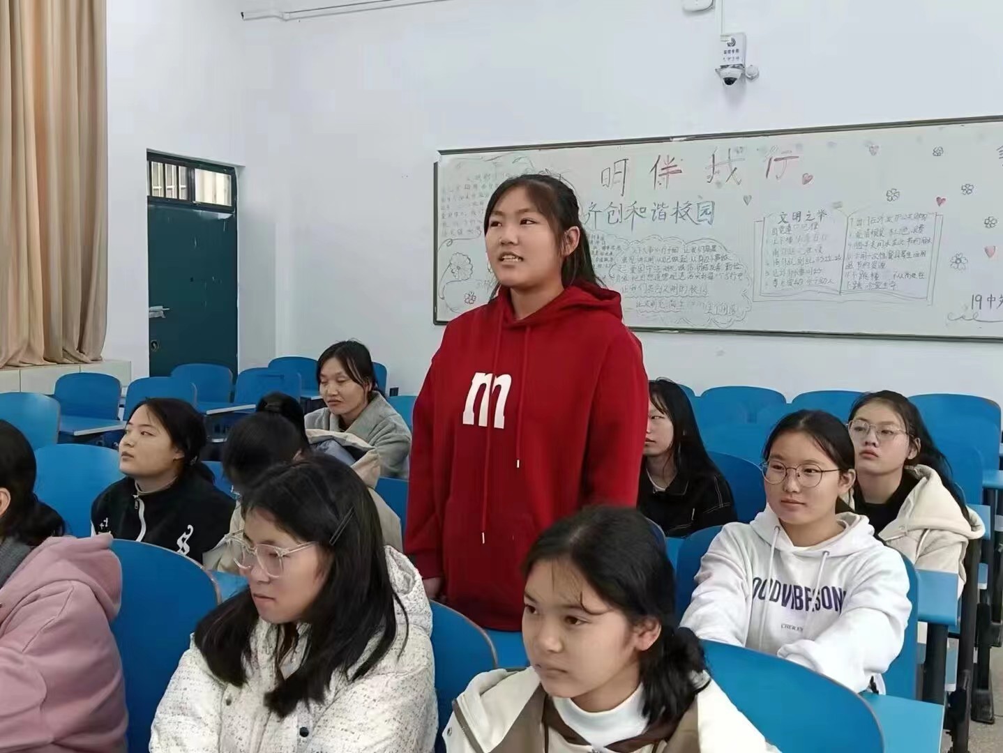 活动伊始,各支部团支书带领同学们齐唱中国共产主义青年团团歌,与同学们共同学习了《团结带领广大青年在实现中华民族伟大复兴的征途中续写新光荣》和《实现中华民族伟大复兴是中华民族近代以来最伟大的梦想》等篇目,并根据学习内容介绍了中华民族伟大复兴的历史进程,帮助同学们进一步了解中国式现代化,加强对新时代、新征程、新发展的认识。接着,各支部团支书分享了汪顺、徐枫灿等有为青年的故事,激励同学们向优秀的青年人物学习,深刻认识到自己的时代责任与使命担当,争做有理想、敢担当、能吃苦、肯奋斗的新时代好青年。最后,各支部团支书带领同学们开展了《论党的青年工作》读书交流分享会,鼓励同学们就学习内容积极发表感言,同学们纷纷表示,在今后的学习与生活中,将严格要求自己,努力学习专业知识,提高专业素养,以奋发进取的精神面貌奏响青春主旋律。