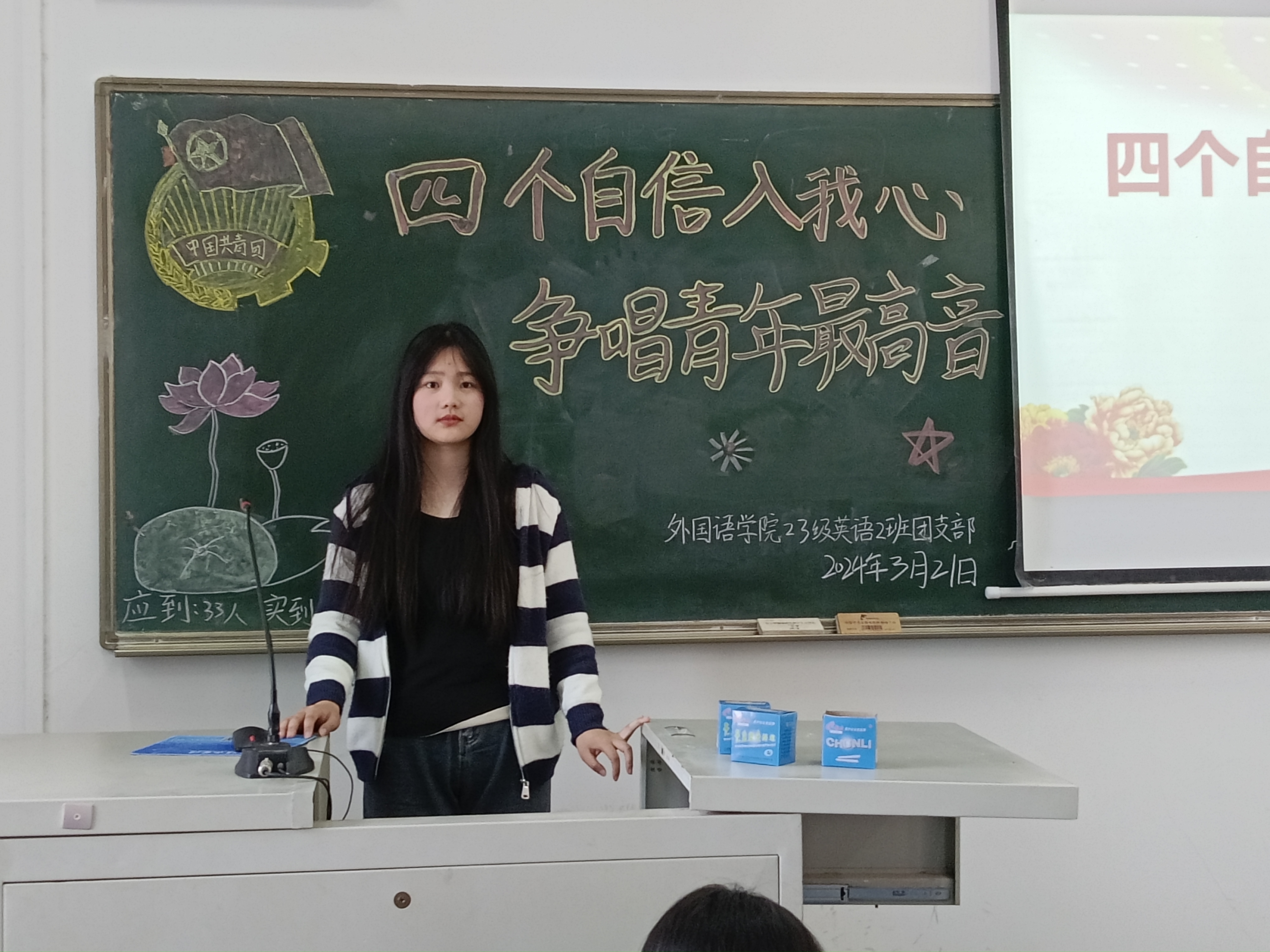 为深入学习贯彻习近平总书记在全国“两会”期间的重要讲话精神,增强青年学生的文化自信心和民族自豪感,3月21日下午,122cc太阳成集团团委各支部通过线上线下相结合的方式开展了以“四个自信入我心,争唱青年最高音”为主题的团日活动。本次团日活动由各支部团支书主持,122cc太阳成集团全体学生参加。
