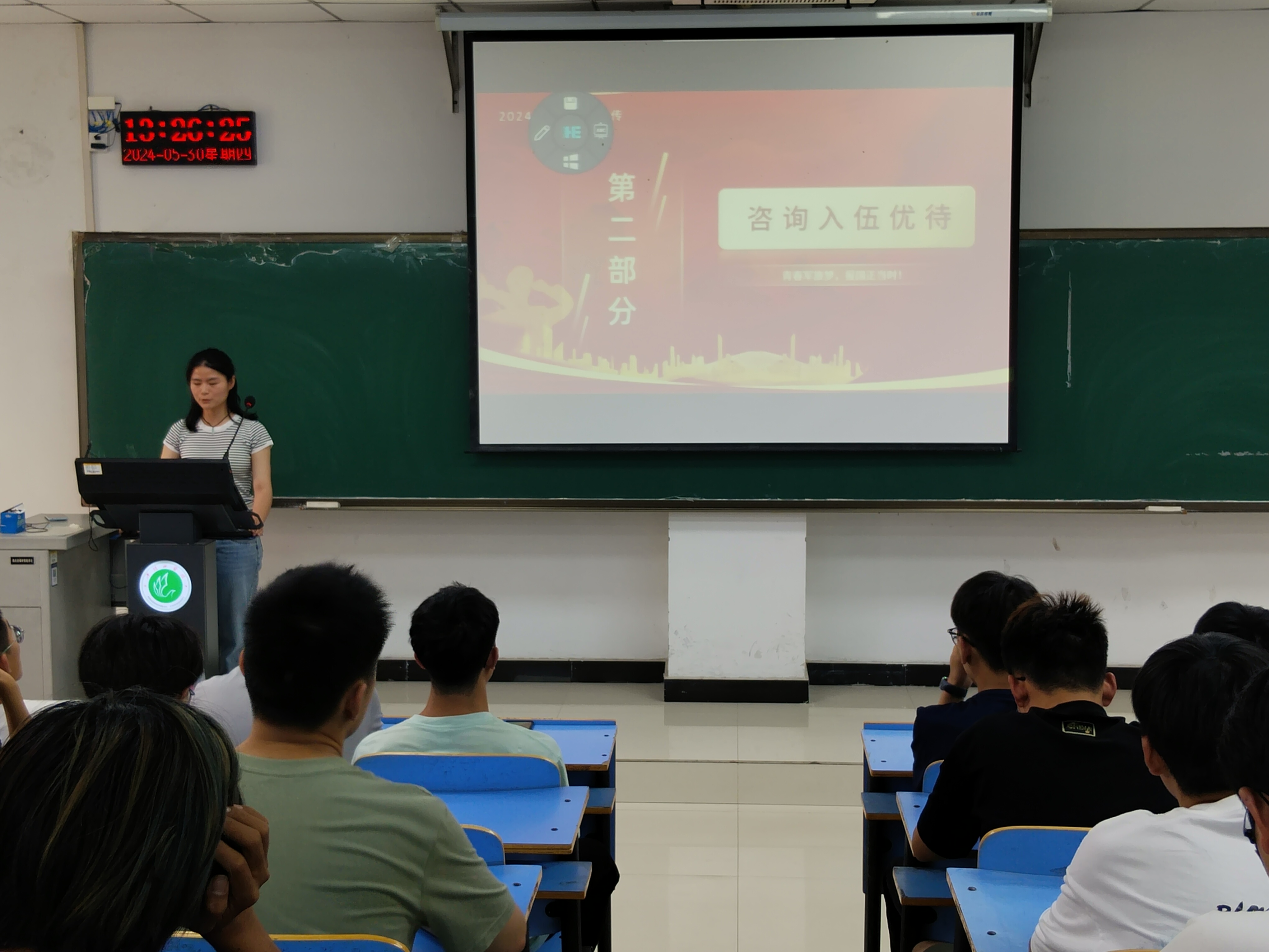 为深入学习贯彻习近平强军思想,进一步深化大学生对征兵工作的理解和认识,激励更多的学生主动参军入伍,5月30日下午,122cc太阳成集团于图书馆L716召开了2024年春季征兵宣讲会。本次宣讲会由122cc太阳成集团2021级辅导员韦士心主持,122cc太阳成集团退役大学生王一凡、谢娣主讲,122cc太阳成集团部分学生参加。
