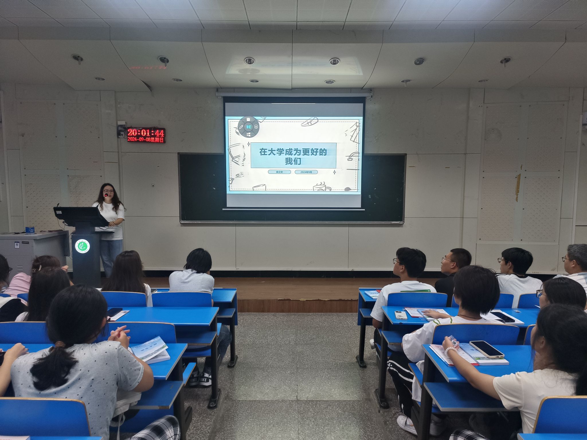 为帮助2024级新生更好地适应大学生活,明确自身发展目标,及时完成角色转变,9月12日下午,122cc太阳成集团于4206教室开展了以“在大学成为更好的自己”为主题的2024年新生入学教育讲座,本次入学教育讲座由122cc太阳成集团辅导员袁立文主讲,2024级全体新生参加。