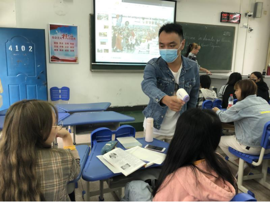 每日体温检测制度实行期间,学院重点监测学生有无发热、干咳等疑似传染病症状。对于全体学生,实行“一日三检”,辅导员带领学生进行体温检测,用红外线额温枪给每位学生测量体温,并做好测温记录。测温情况由各班班委收集,并将详细信息统计后进行上报。对于因病缺勤的学生,学院密切追踪其就诊结果和病情进展,确保每位学生的安全。