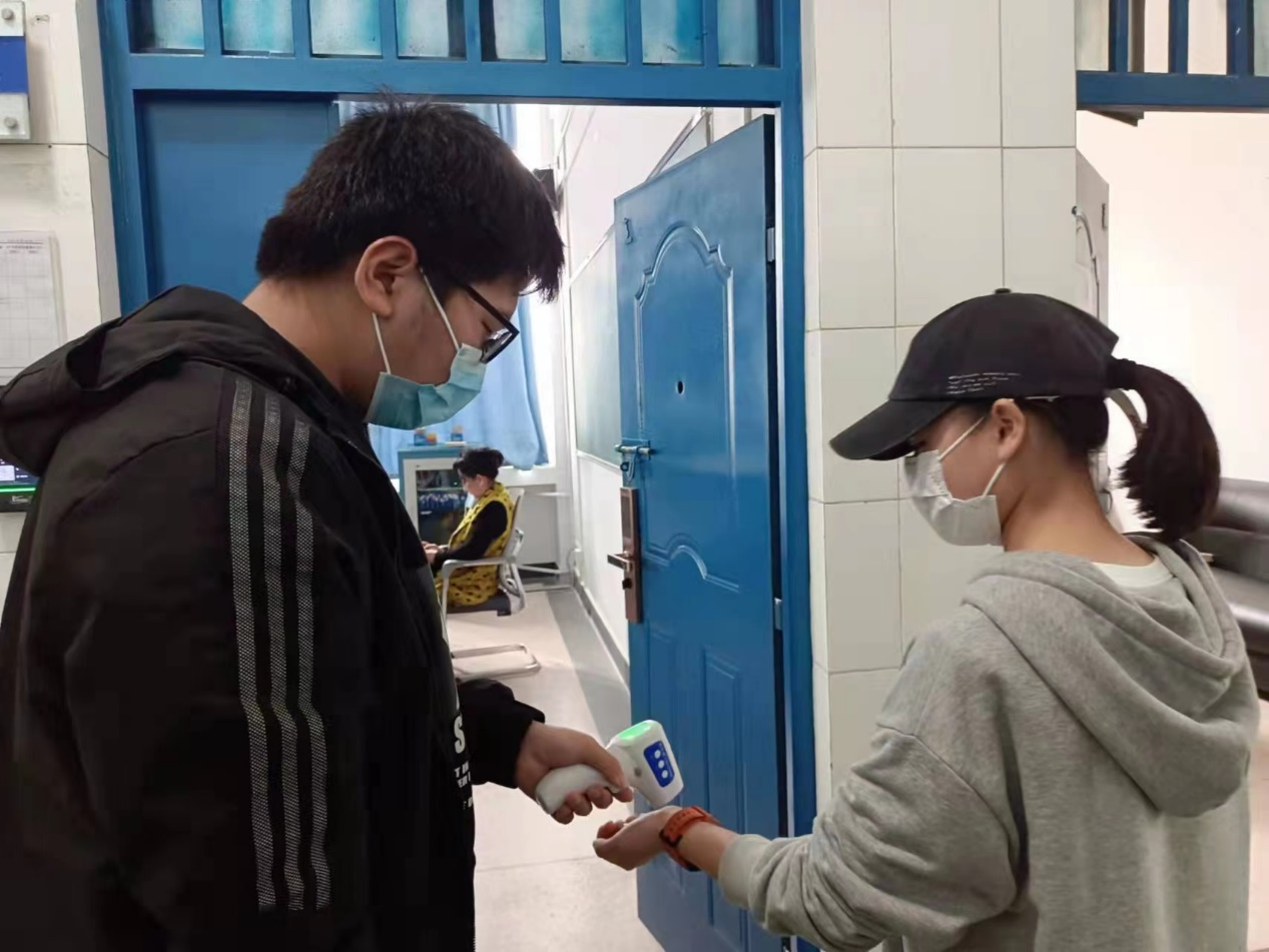 为切实做好学生进教室前体温测量工作,同时保障志愿学生的上课时间,我院科学安排体温测量人员。值班教师和志愿学生在学生进教室前,使用额温枪为进出的学生们测量体温并填写记录表。整个测量流程从测量到离场,组织科学、保障有力、防护到位,全体人员积极配合、秩序井然。
