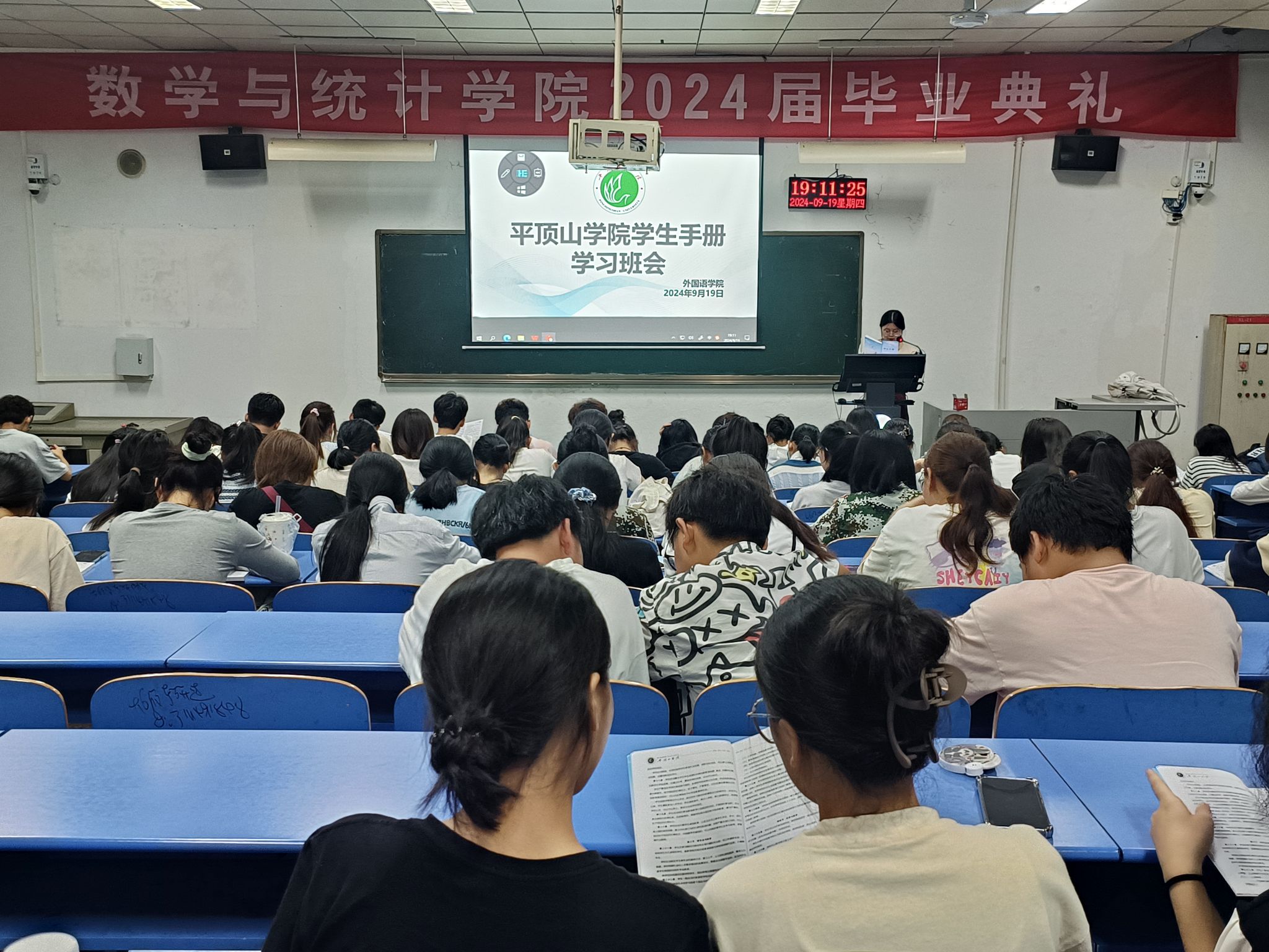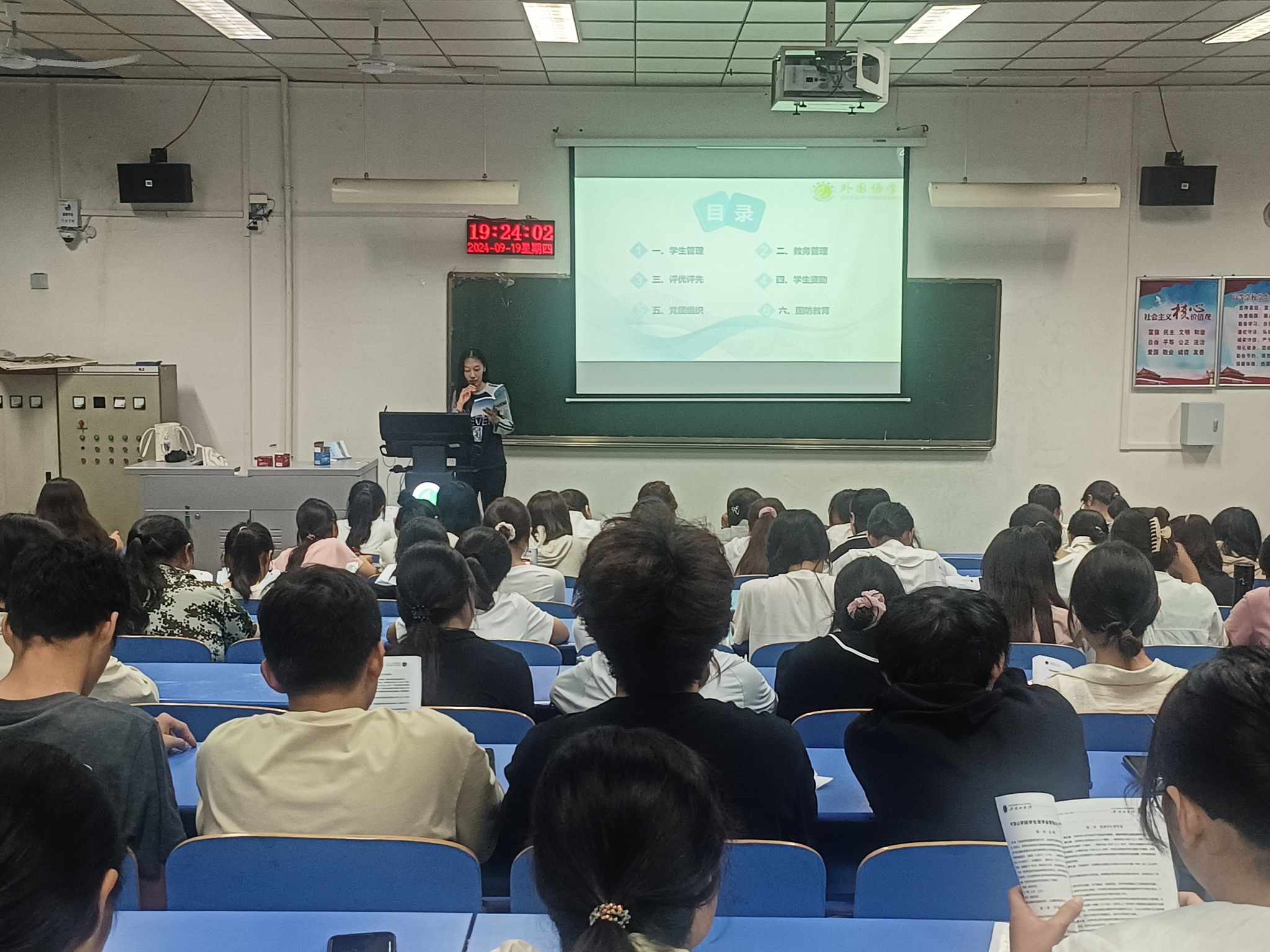 为进一步加强学生思想文明教育,提高个人素质,规范学生个人行为, 9月19日下午,122cc太阳成集团于1406、1407教室组织2024级新生学习了学生手册。本次学习由122cc太阳成集团2022级学生葛佳瑶、李佳音、王雨晴及2024级学生杨曦、李明静和李佳璐带领,2024级全体新生参加。
