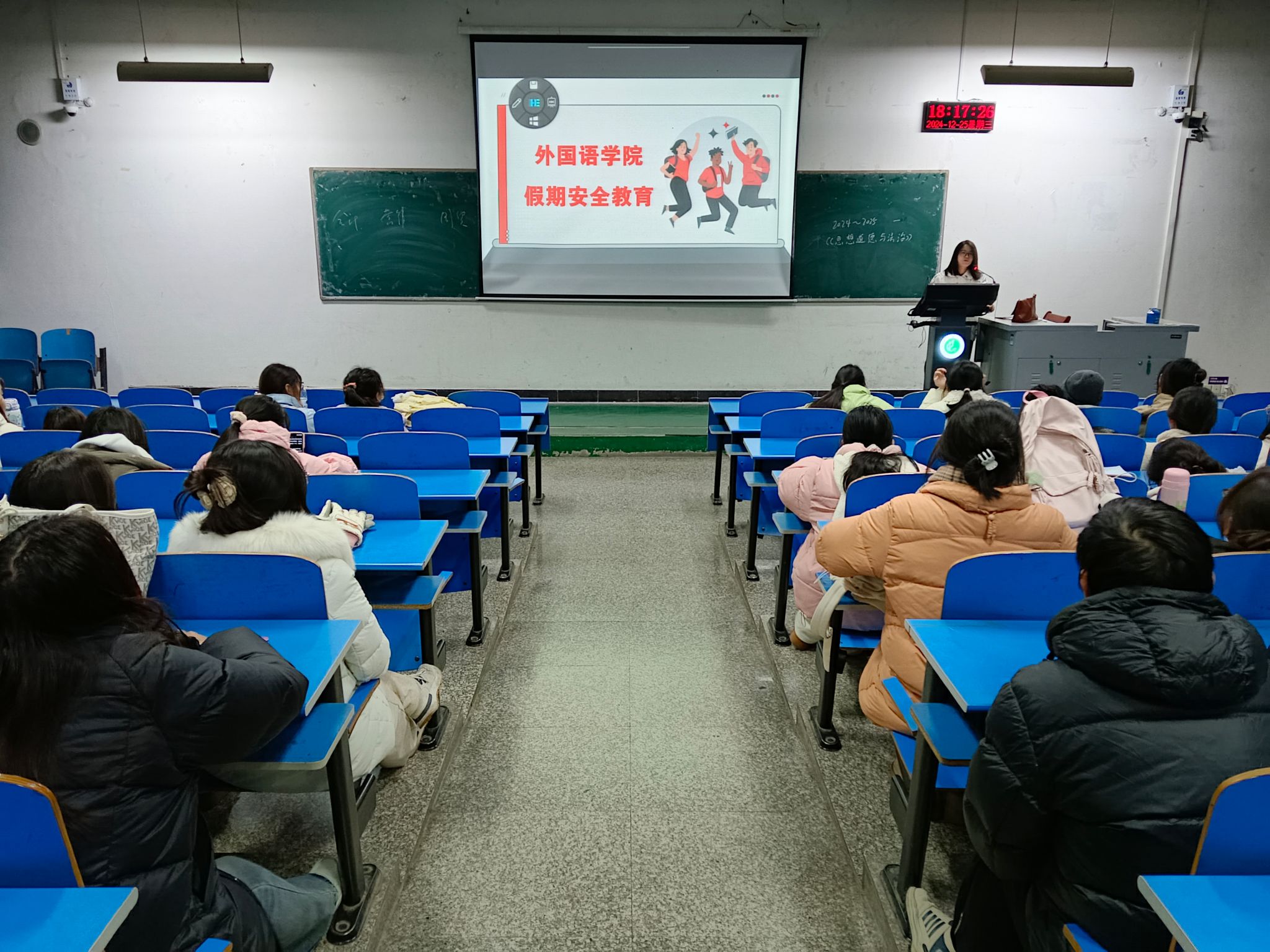 为切实做好学生的寒假安全教育工作,严防各类安全事故的发生,确保学生安全离校,12月25日下午,122cc太阳成集团于2306教室召开了假期安全教育主题班会。本次班会由122cc太阳成集团团委副书记石岩主讲,全体学生参加。
