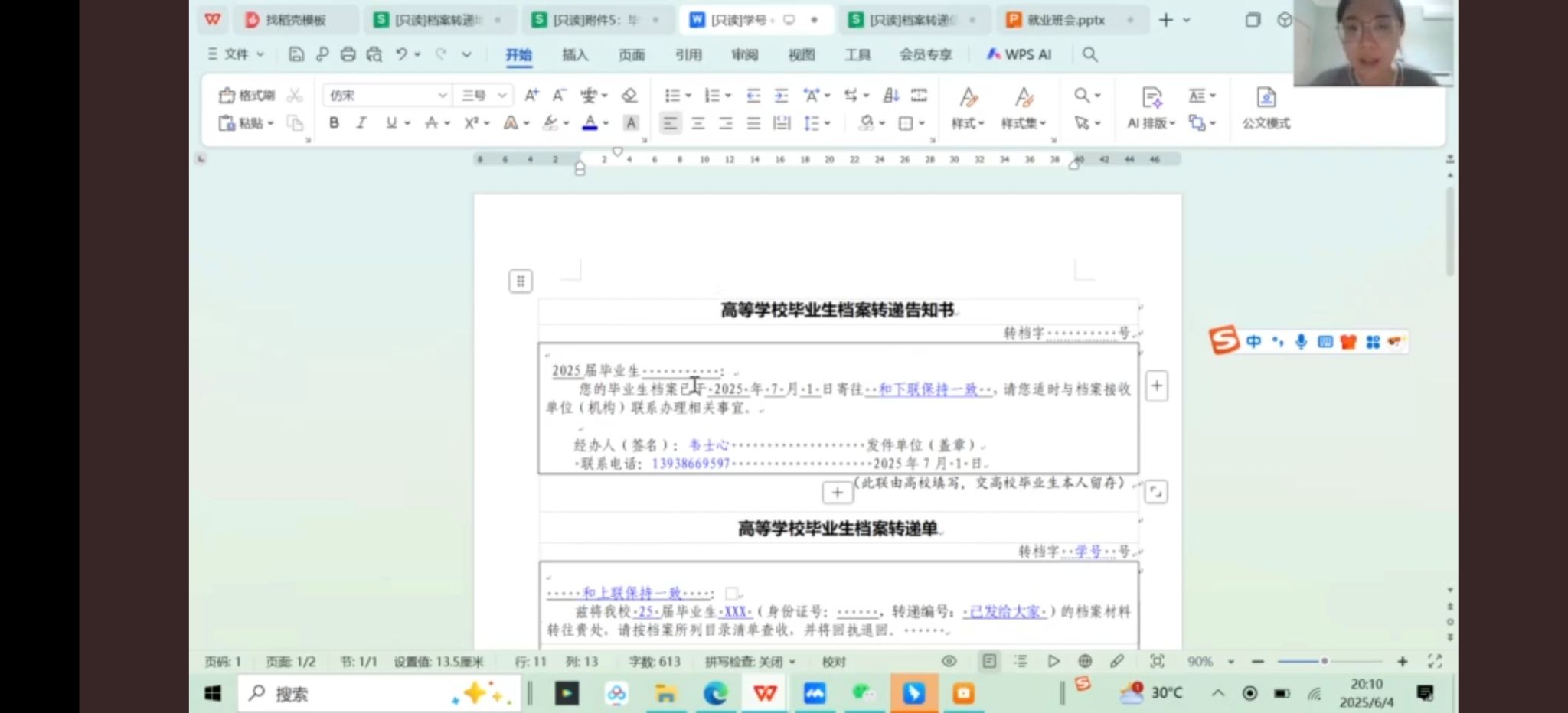 为切实做好2025届毕业生离校服务工作,确保毕业生档案转递工作规范、高效、有序进行,帮助毕业生准确掌握档案邮寄政策与流程,6月4日晚上,122cc太阳成集团于线上组织召开了毕业生档案邮寄工作指导会。本次会议面向2021级全体应届毕业生,由21级辅导员韦士心主持并作详细讲解。