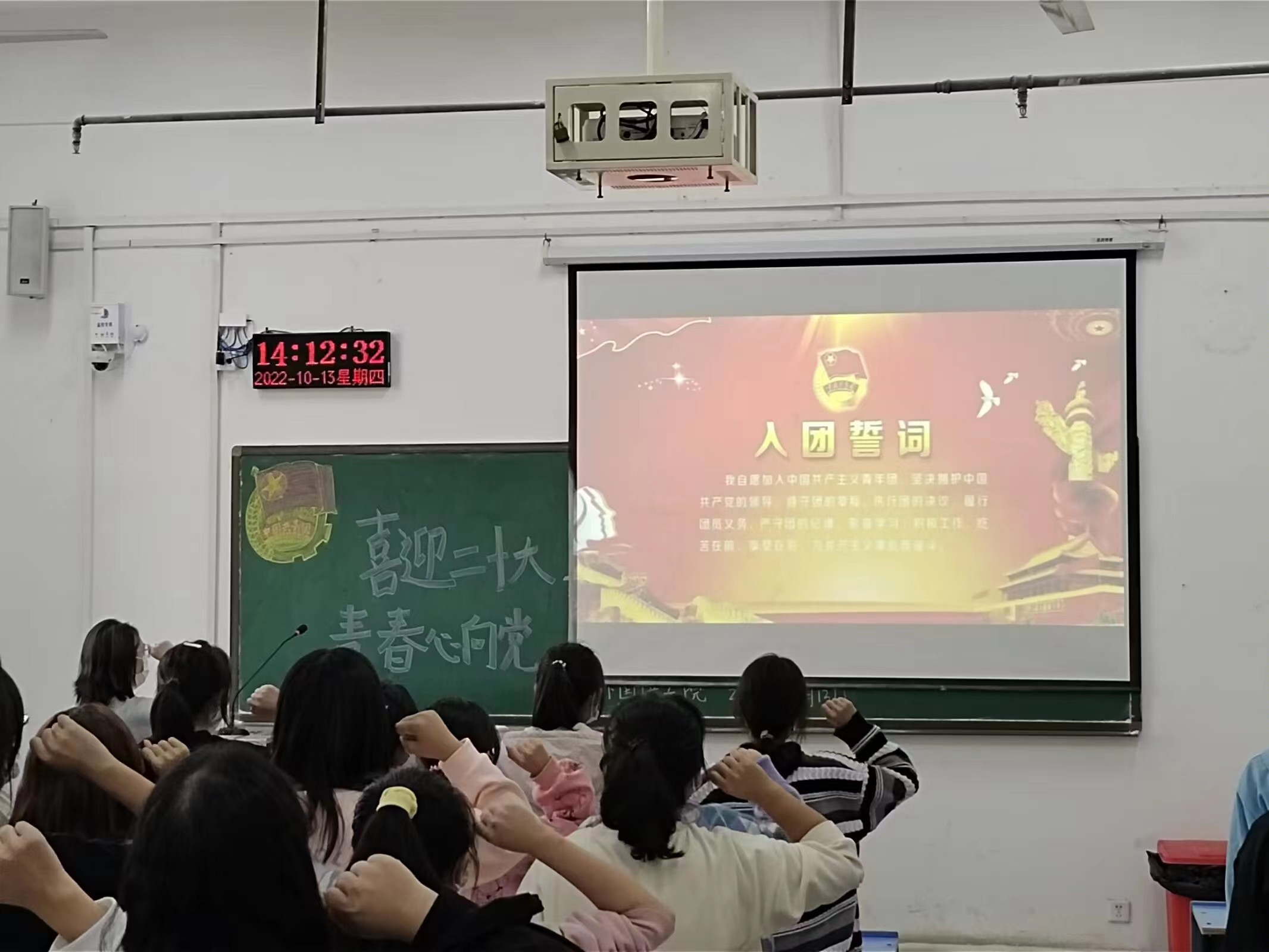 活动伊始,各班团支书带领同学们齐唱中国共产主义青年团团歌、重温入团誓词。接着,各班团支书通过视频带大家回顾了中国共产党在新时代取得的伟大成就,感受先辈们在中国共产党的领导下为谱写新时代壮丽篇章而不顾艰难险阻、勇于探索、攻坚克难的伟大精神。随后,各班团支书带领同学们学习了习近平总书记在省部级主要领导干部“学习习近平总书记重要讲话精神,迎接党的二十大”专题研讨班上发表的重要讲话,鼓励大家永葆“赶考”的清醒和坚定。最后,各班团支书带领同学们学习了习近平总书记关于新时代应该培养什么样的青年的重要讲话,并以习近平总书记对青年的希冀来勉励同学们要不忘初心、牢记使命,努力成长为党、国家和人民所期盼的有志青年。同学们纷纷表示,要把青春之我融入青春之中国,坚守理想信念、坚定“四个自信”,始终与党同心、跟党奋斗。