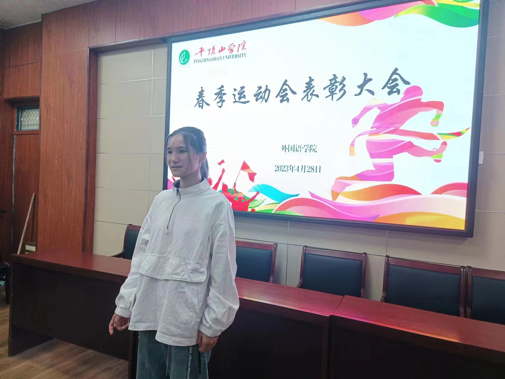 大会伊始,甘泉和贾宏春分别为获得运动会获奖学生颁发了奖状及奖品,并鼓励同学们在生活中也要具备和在赛场上一样不言放弃的高尚品格,做一个优秀的外院学子。接着,田占范对我院学习在运动会中取得的优异成绩表述祝贺,并对他们再比赛中的拼搏精神表示赞扬,并鼓励同学们要以本届运动会为契机,总结经验与教训,争取在明年运动会中再创佳绩!随后,运动员代表陈路加发言,她对学院领导老师的支持关怀、志愿者的辛苦付出、同伴的共同努力表示了感谢,并表示会秉承初心,勇往直前,争取在明年的赛场上取得更大进步。最后大家一同观看了运动会期间的精彩合集,回顾了外院学子在运动会上的青春风采和出色表现。同学们在观看视频后纷纷表示,两天的运动会虽然短暂但十分珍贵,在自己的心中留下了美好的记忆。