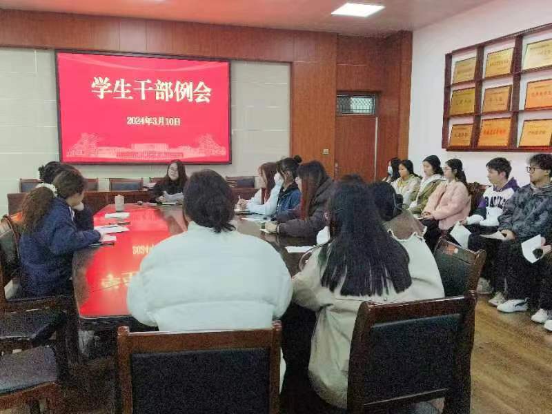 会议伊始,石岩从学生干部定位、优秀学生干部标准、学生干部应具备的素质和能力三方面着手,对学生干部提出了发展要求。她强调到,同学们要善于发现工作上存在的不足并加以改进,努力协调好工作与学习的时间,以更加积极的工作状态投入到本学期的各项工作中。接着,石岩向同学们详细讲解了学校文件中关于团委学生会工作的新规定,并就学生干部未来的工作做出了进一步要求,她讲到,希望各位同学在今后的工作中能够脚踏实地,切实履行服务同学的职责。最后,石岩带领全体学生干部深入学习了“两会”精神,鼓励同学们以“两会”精神为指导,提高自身思想素质,不断创新工作思路和工作方法,提高工作效率和质量。同学们纷纷表示,在今后的日常工作中会牢记全心全意为同学服务的根本宗旨,积极创新工作思路,发挥模范带头作用,更好地传递外院声音,展现外院学生风采。