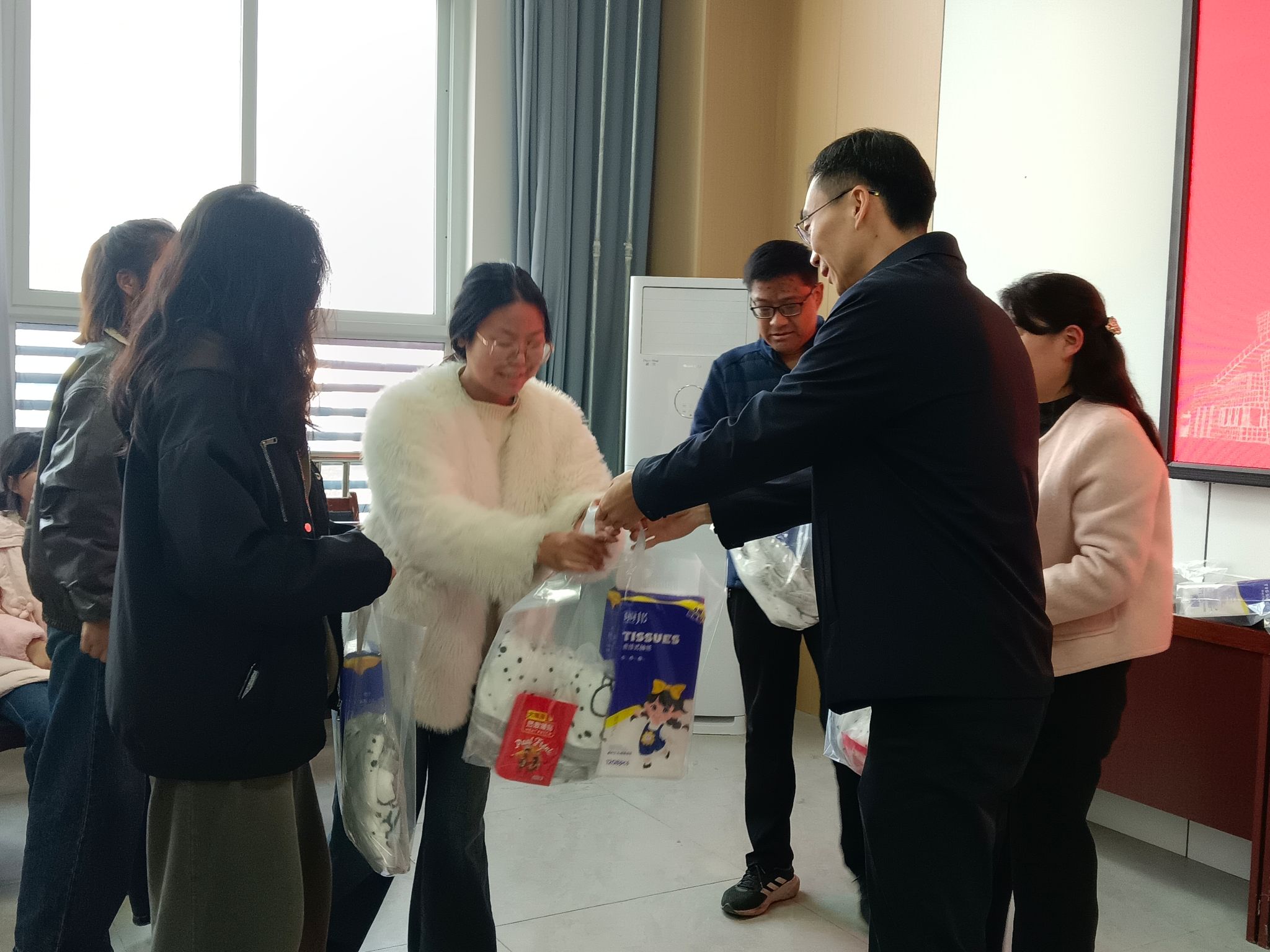 首先,石岩介绍了本次活动的安排,重点说明了122cc太阳成集团对家庭经济困难学生实际需求的关注。随后,甘泉指出本次活动是在精准资助基础上,进一步落实人文关怀的具体举措,将学院的关心与支持转化为实实在在的温暖,帮助同学们安心学习、健康成长。此外,甘泉提醒同学们在大学期间要明确学习目标、拓展综合素养,以饱满的热情奔赴成长之路。最后,甘泉、蒋领敏、田占范共同将饱含暖意的大礼包送到同学们手中,并叮嘱同学们要注意天气变化,及时添衣保暖。同学们纷纷表示,自己在此次活动中充分感受到了122cc太阳成集团大家庭的亲切与温暖,未来将以积极的心态开启新阶段的学习。