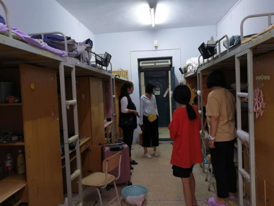 老师们的到来受到了同学们热情真挚的欢迎。探访期间,袁老师仔细询问了同学们在新环境下的状态,尤其对外地来求学的同学表示关切之情,了解了他们的家乡,询问他们对气候的适应情况,同他们一起拉家常,并嘱咐同学们多多注意身体,好好锻炼,军训期间训练辛苦,一定照顾好自己。同时,韦老师也对同学们的生活和学习方面进行了有效的指导,她叮嘱同学们要注意人身财产安全,保管好贵重物品;陶老师在探访途中还细心地把宿舍坏的物品一一登记下来,亲自向学校方面反映,切实尽快解决学生问题。临走时,辅导员们又反复提醒大家:近期气温下降,早晚要注意及时添加衣服,注意保暖,避免感冒。老师们的嘘寒问暖,亲切的话语,让每一位新同学都感受到了如家般的温暖。