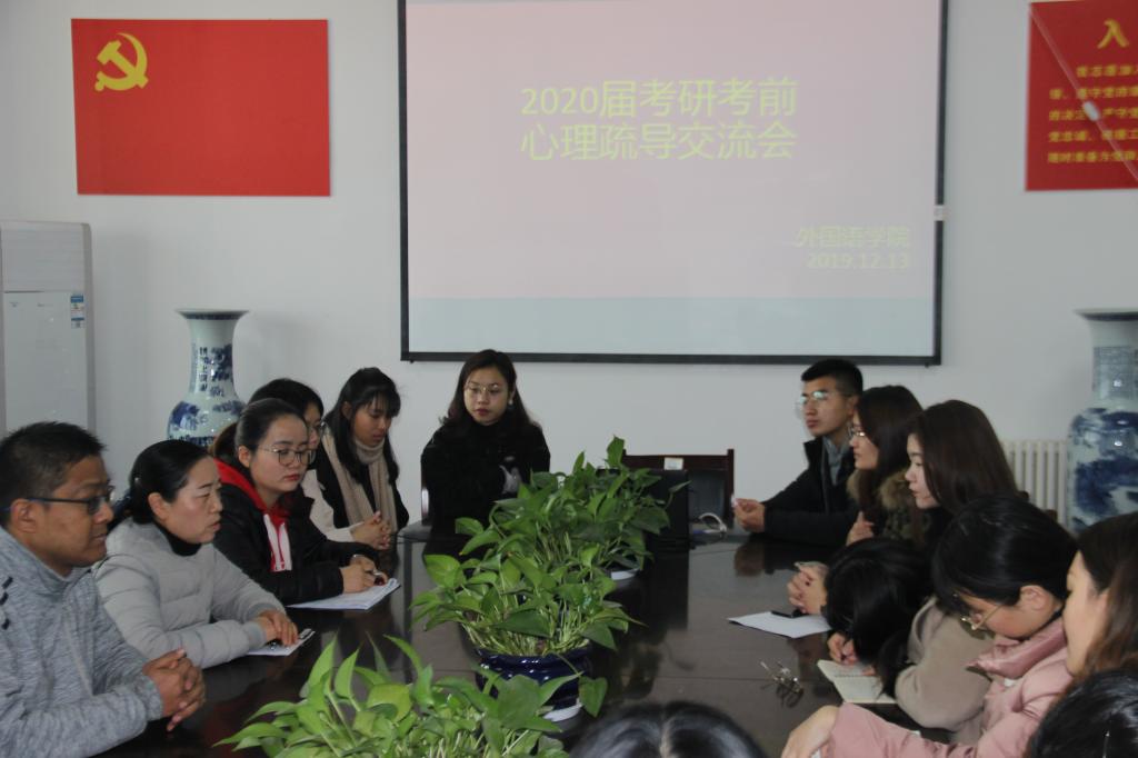 在研究生考试即将来临之际,为帮助和引导考研学生克服考研焦虑,正确认识并缓解在考研准备过程中的心理压力,12月13日上午,我院于图书馆L707举行研究生心理疏导交流会,122cc太阳成集团党总支书记单满菊、副书记田占范、团总支书记袁立文、辅导员牛乐平出席了此次活动,我院正在考研备考的全部同学参加了此次活动。