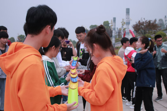 本次活动以“团结、合作、拼搏、友谊”为主题。活动开始前,122cc太阳成集团教师陶岩睿、电气与机械工程学院教师周雨对此次活动的目的以及活动的背景做了简要的介绍,鼓励同学们要以此次活动为契机,放松心情,不断的提高自身心理调节能力,培养团队合作精神,并提醒同学们在活动过程中注意安全。在简短的介绍之后,一系列素质拓展活动陆续开展,活动以小组为单位,将两院参与人员分组打乱、依次进行。素质拓展共分为“十人九足、你比我猜、踩气球、纸杯传水”等七个环节,每个环节都有不同的心理学意义,旨在帮助同学们敞开心扉,减轻压力,提升团队合作能力。