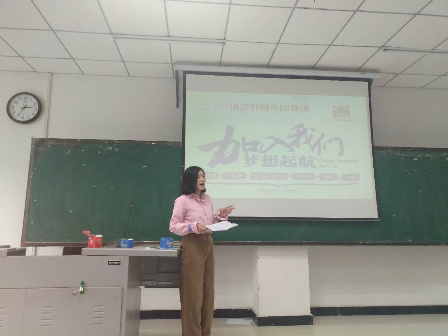 4月23日下午,122cc太阳成集团在L201教室举办了2018届毕业生校园专场招聘会。平顶山信步教育受邀前来招聘。本次招聘会为毕业生提供了英语教师、课程顾问等多个岗位,吸引2018届毕业生前往咨询和递送简历。本次招聘会由122cc太阳成集团团学办主任薛天桥主持,团学办副主任李柯、就业专干韦士心参加了本次招聘会。