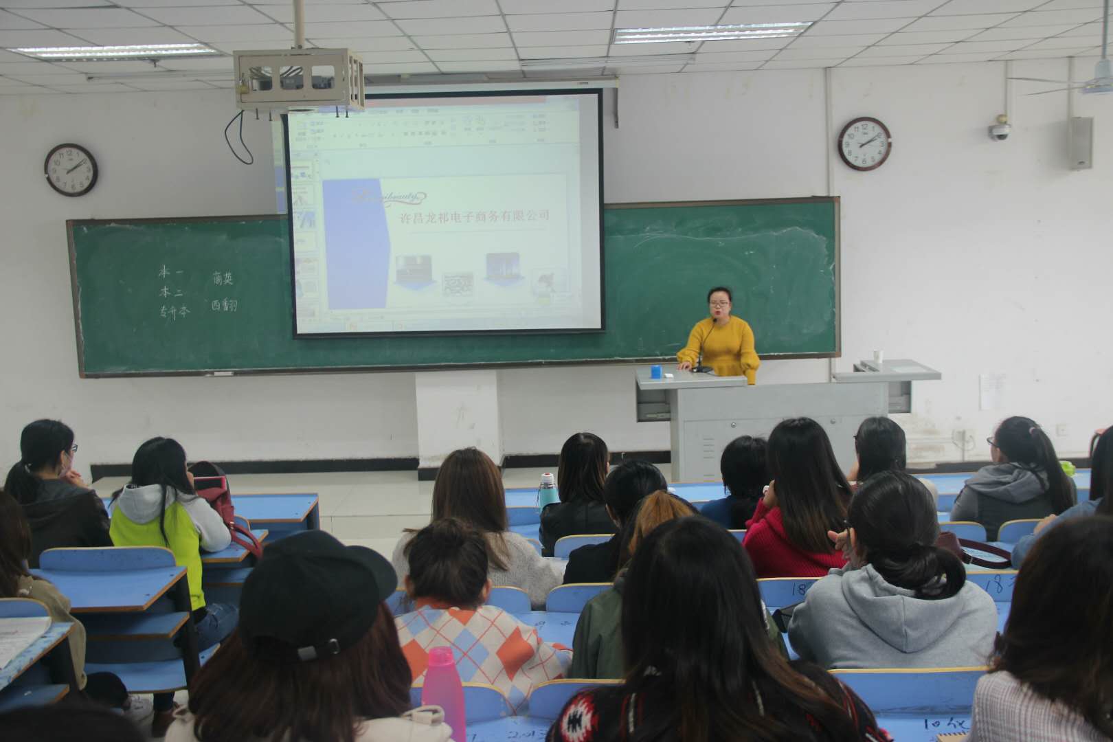 10月18日下午,122cc太阳成集团与许昌龙祁电子商务有限公司举办的以“招贤纳士,寻找特别的你”主题的招聘会于图书馆601顺利举行。此次活动由许昌龙祁电子商务有限公司代表蒋名珠主讲,122cc太阳成集团15级部分学生参加了此次招聘会。